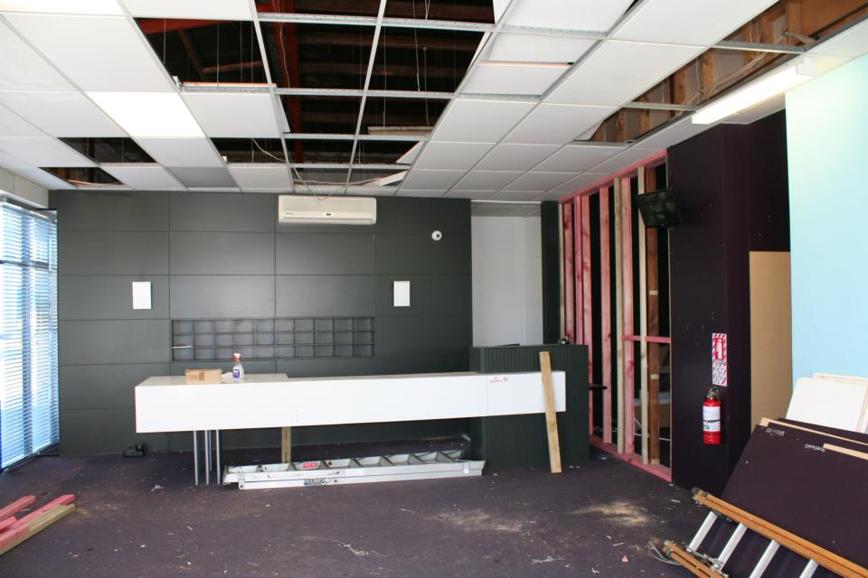 Apart from the strengthening of the building their was a lot of building to be done too, which included the building of our Home Theatre Sound Room & numerous shelves and benches throughout the two buildings. The final touches were having all the sign-writing placed onto the buildings and getting to see them at night which almost lights the whole street up!
