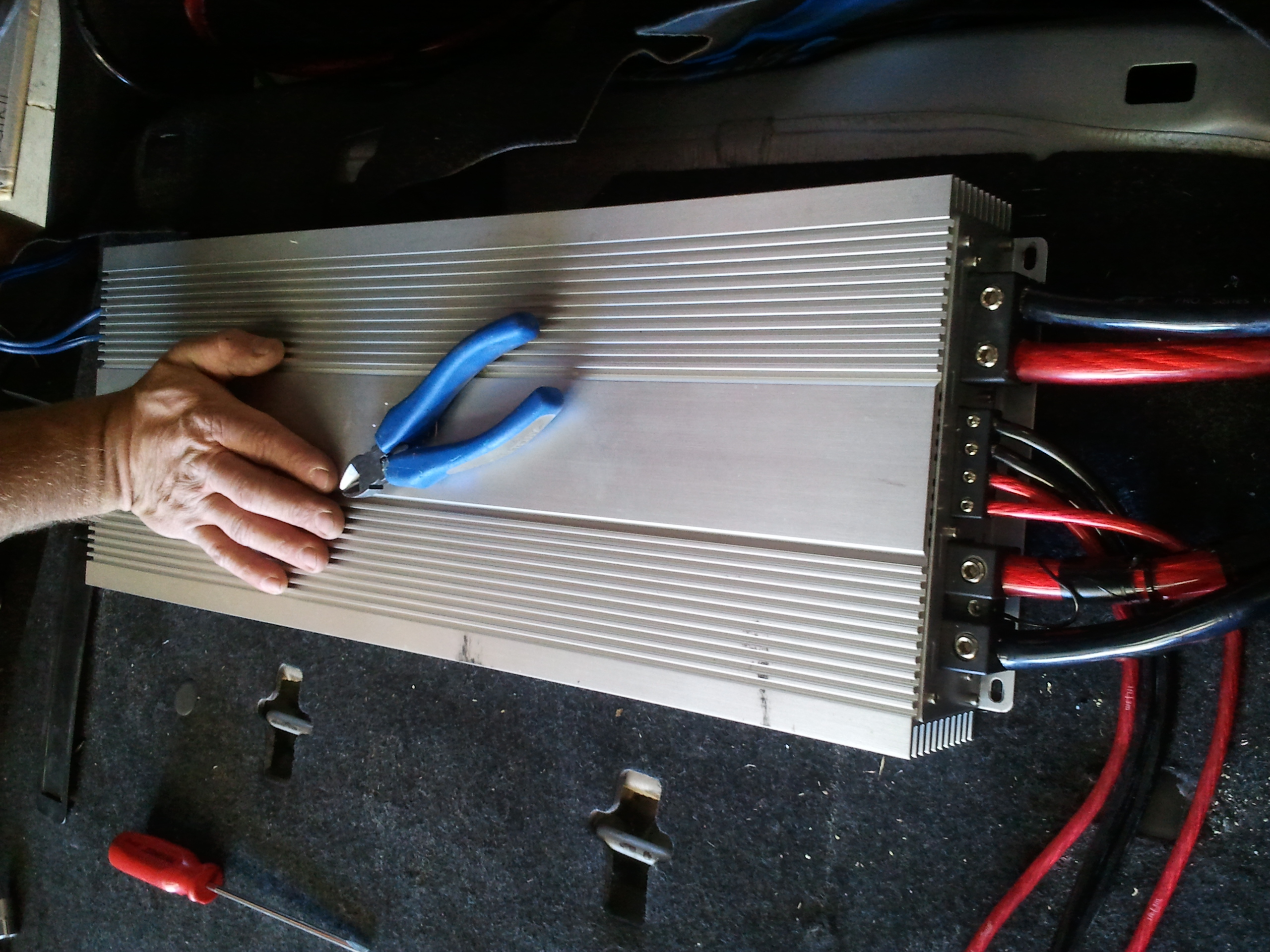 Ok I know some of you going to say, “How is that DD CM1 amp going to get high numbers out of four 10″ Sub’s?” Well, that is why we swapped it out for a incredibly mental DD M4 amp. Surely 6100W x 1ch should be enough power! And just look at those Zero Gauge power and earth cable’s, you know when an amp has 2x power and earth terminals it means business!