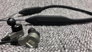 The aluminum earphones and silicone neckband provide a comfortable listening experience