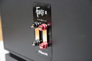 The three active drivers are found in the front while the passive resonator is placed at the back of the speaker, above a set of heavy-duty speaker terminals which allow for bi-amplification. The Klipsch Forte III boasts a sophisticated design and features an acoustically transparent cloth grill crowned with the PWK (Paul Wilbur Klipsch) logo. To add to the speaker’s elegant flair, the passive driver’s dust cover is also stamped with the PWK logo.