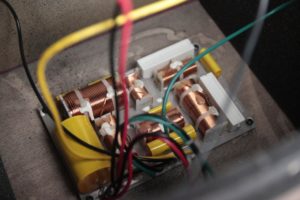The Klipsch Forte III’s passive filter features sizeable condensers and resistors.
