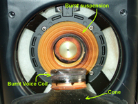 The most common way Sub-Woofers are damaged are from heat, heat caused by either over-driving (To much power) or running Amplifiers into distortion. The damage Sub-Woofers suffer can very from torn triple joints (Suspension) and surrounds to burnt out coils. This is why earlier I was saying its important to buy a Sub-Woofer that can be re-coned just in case you have the tendency to push past the breaking point!