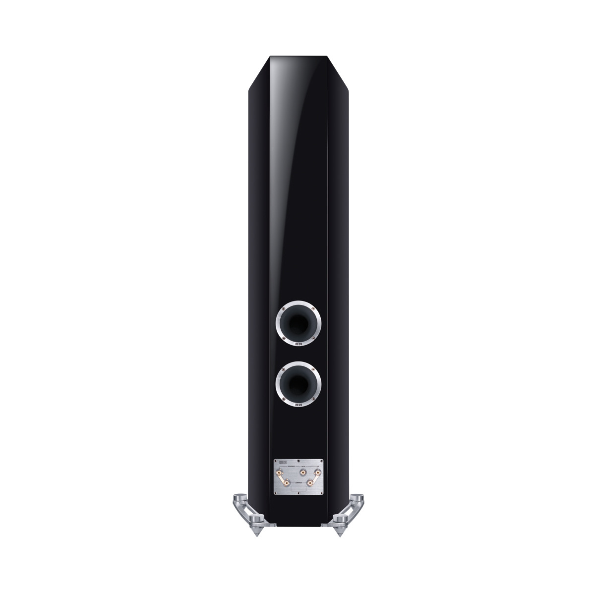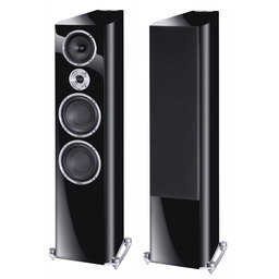Large state-of-the-art floorstanding speaker with outstanding acoustic properties. Eye-catching features of the largest floorstanding speaker in the series include its angled top and solid aluminum struts, which provide a broad base for a secure footing. Height-adjustable metal spikes ensure the speaker is positioned at a perfect distance from the ground, thereby paving the way for an unadulterated high-end listening experience. The bass and mid-range frequencies are catered for by two 200 mm woofers and a 170 mm midrange driver with tried and tested HECO kraft paper cones, which are renowned for their audiophile sound characteristics and high level stability. The newly developed Fluktus tweeter, which features a computer-optimized multi-wave front panel and 30 mm PFC dome, reproduces its entire frequency spectrum with very natural tones and without any form of exaggeration.