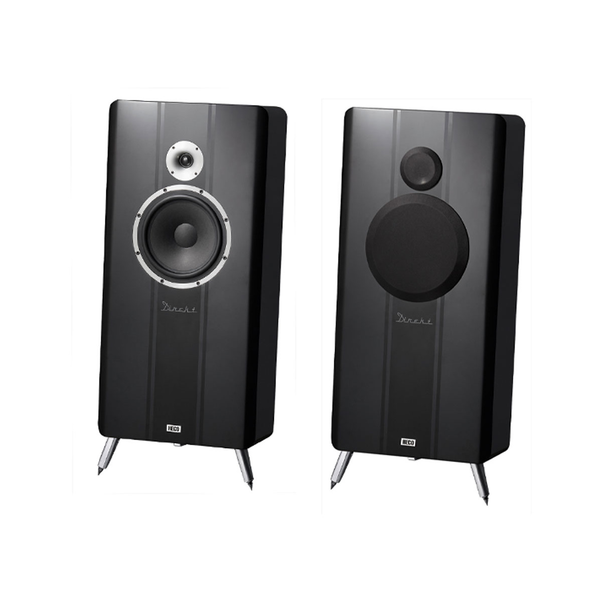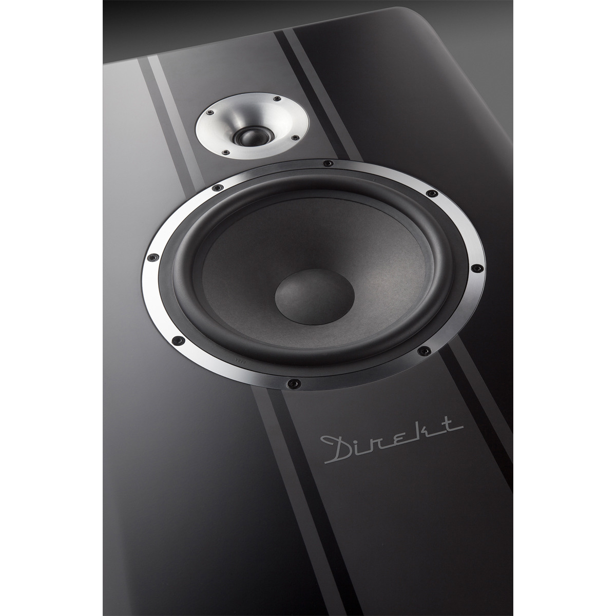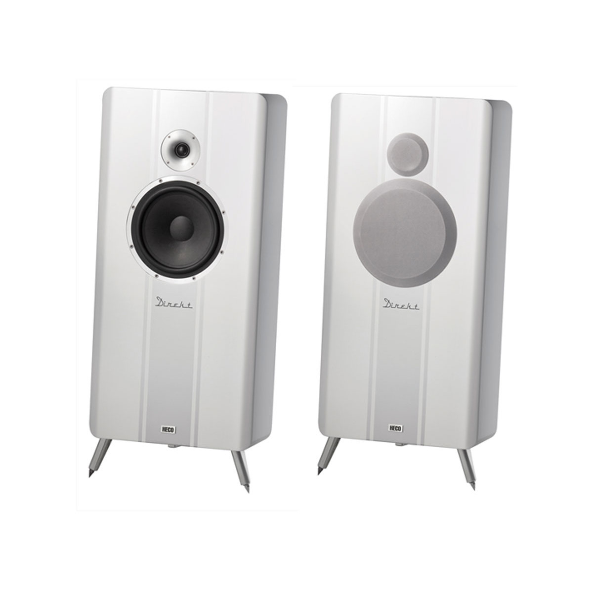 Inspired by classic models, the "Direkt" high-end two-way loudspeakers are custom-made in the Heco laboratory! A 25 cm subwoofer with a kraft paper diaphragm and extremely low-distortion drive is responsible for a crisp and precise bass, supported by a generous volume of air and two downfire reflex tubes. Combined with the high-energy silk cone with a particularly strong double-magnet drive and solid-aluminium wave-control horn, a finely balanced, dynamic soundscape is produced with a crystal clear and direct vocal range. On account of its excellent efficiency and linearised impedance characteristics, the Direkt harmonises perfectly not only with high-quality transistor amplifiers, but also with delicate tube amplifiers. The sloping flat enclosure in a dual-colour stripe design provides for visual highlights, while solid metal feet ensure optimum weight distribution thanks to the three-point mounting.