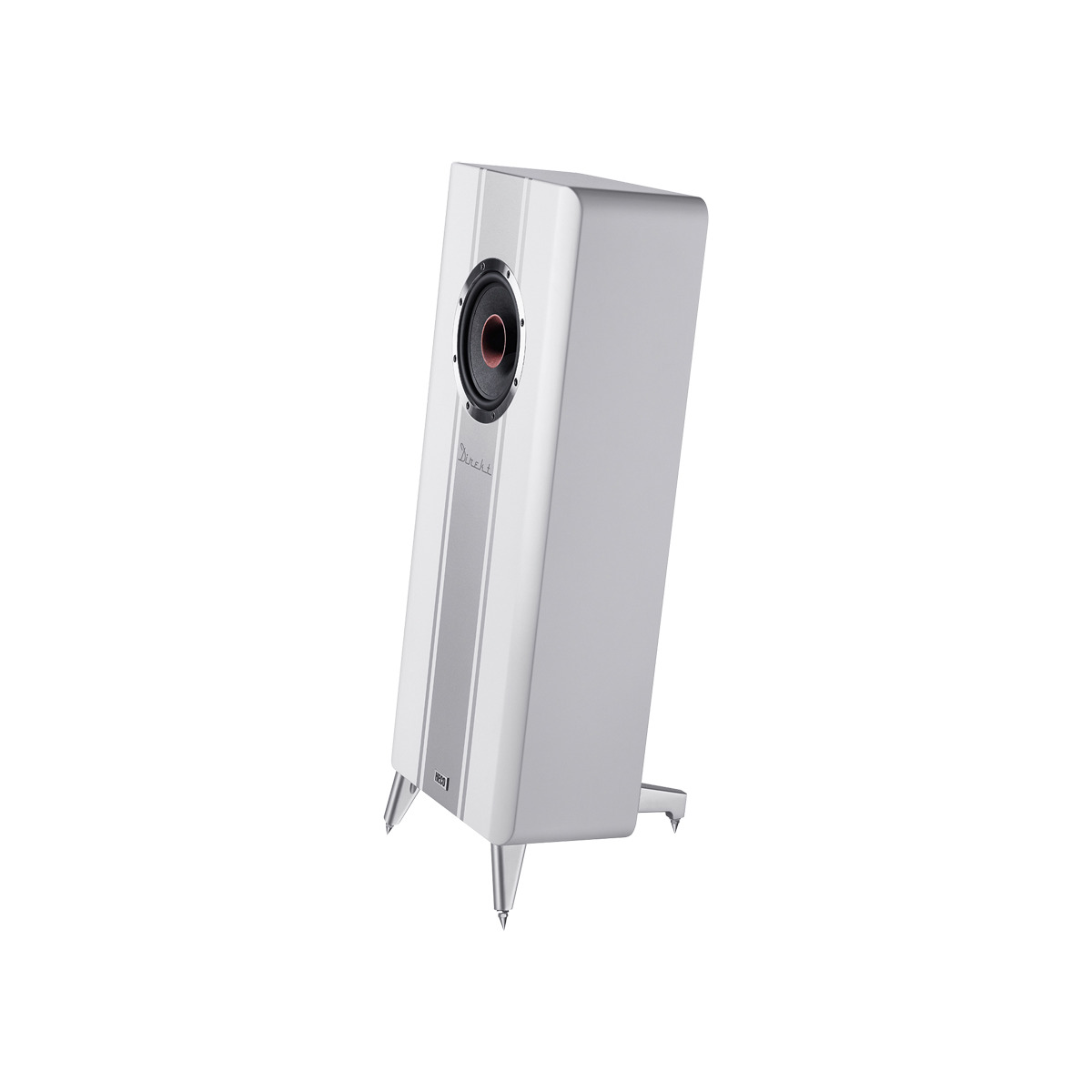 Features - High-end floor-standing loudspeakers with full-range driver and high level of efficiency, Exclusive one-way system with an excellent level of efficiency and superior spatiality. The latest development standards and technology ensure a state of the art configuration for this classic construction. Can be combined optimally with transistor and tube amplifiers from 5 watts per channel. Attractive flat-design enclosure, floating appearance through all-metal design foot construction