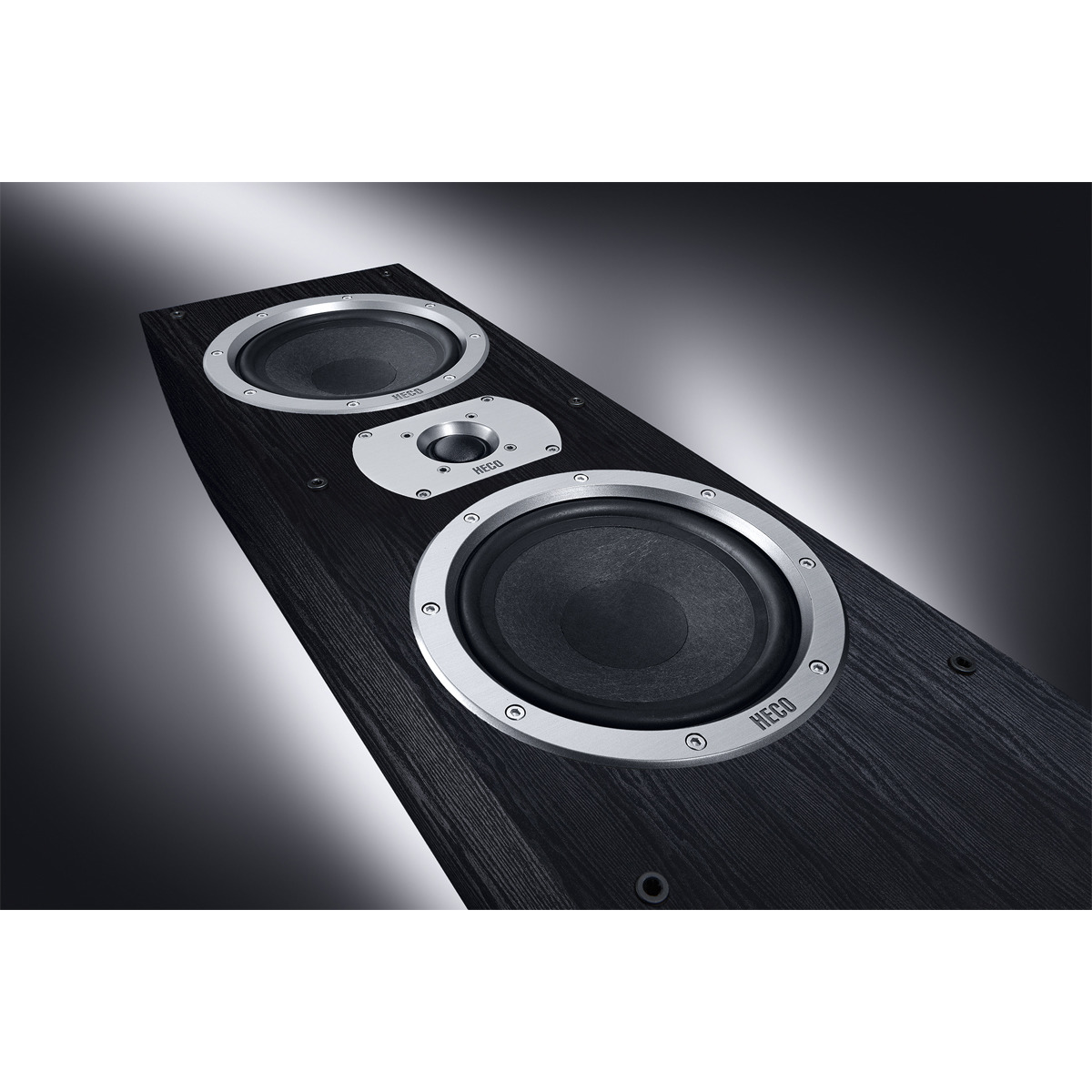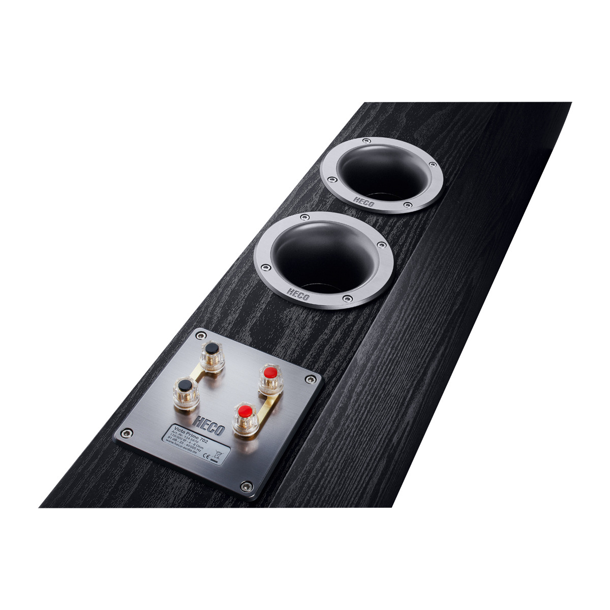 HECO´s Victa Prime 502 is the smallest floorstanding speaker in the series. Thanks to HECO´s tried and tested long-fibre kraft paper, the two 170 mm bass-midrange drivers always ensure sufficient stability and freedom from distortion in the critical frequency ranges. The 25 mm silk dome used for this model, which also features ferrofluid cooling for improved power handling, is equipped with a short horn attachment for enhanced transition to the midrange. Lightly rounded sides, which have been meticulously manufactured from layers of glued and moulded MDF panels, provide the speaker with a modern appearance. The extremely low-resonance structure offers optimum conditions for the chassis and bass reflex coordination.
