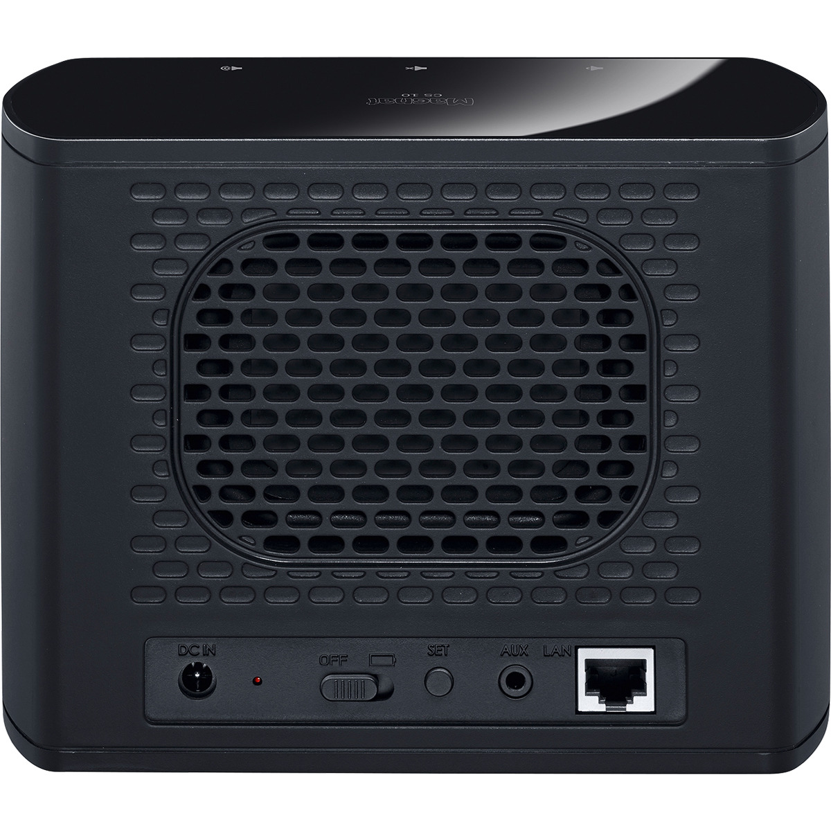 EQUIPMENT - On/off switch for internal battery on the back (CS10), Built-in LaN, socket, 3 sensor buttons (volume, +/- and mute), External power supply AC 230V AC/ DC 12V 2A 24 watts, Multicolour status LED: orange = AUX input connected white = start/operation red = standby green = reset and software update