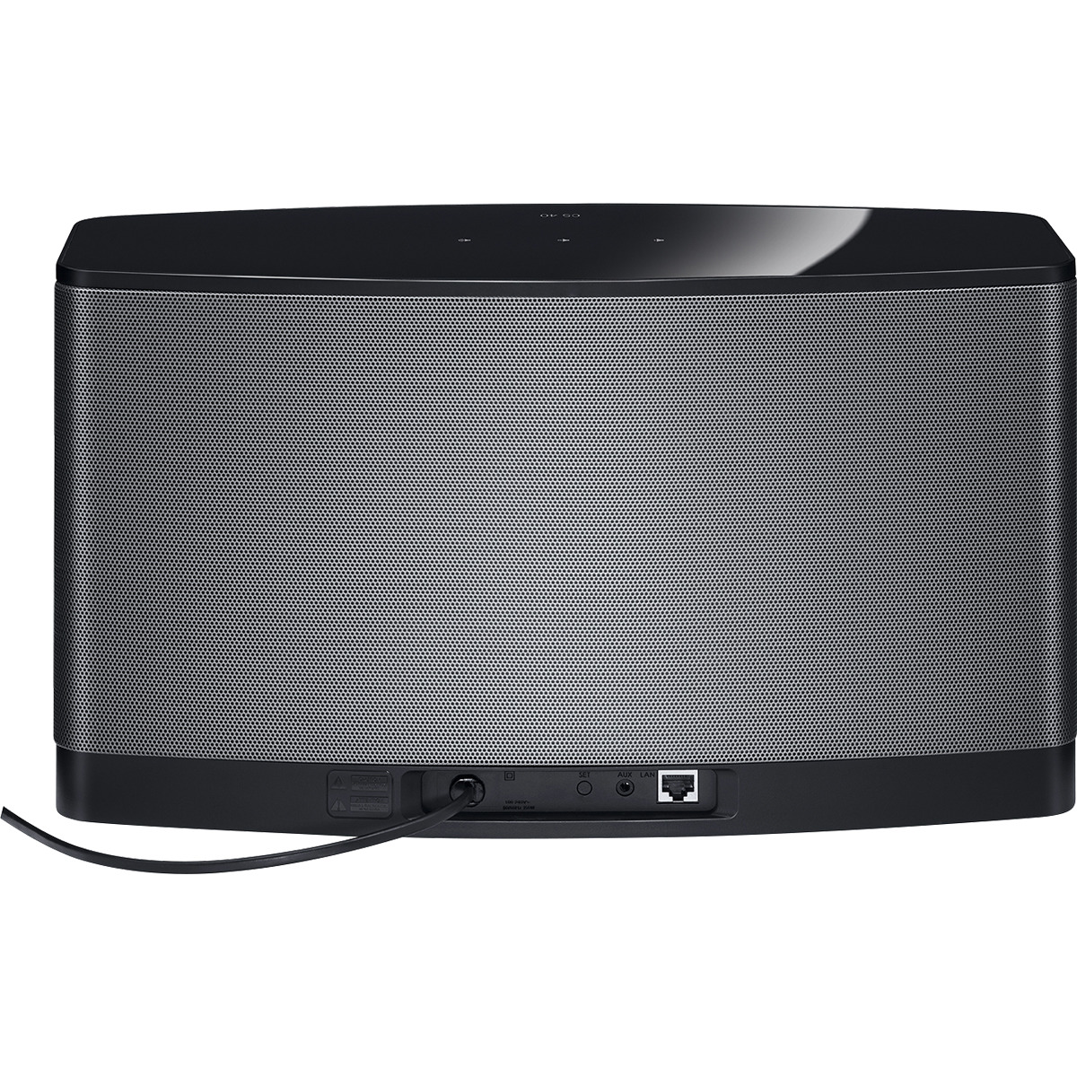 EQUIPMENT - On/off switch for internal battery on the back (CS10), Built-in LaN, socket, 3 sensor buttons (volume, +/- and mute), External power supply AC 230V AC/ DC 12V 2A 24 watts, Multicolour status LED: orange = AUX input connected white = start/operation red = standby green = reset and software update