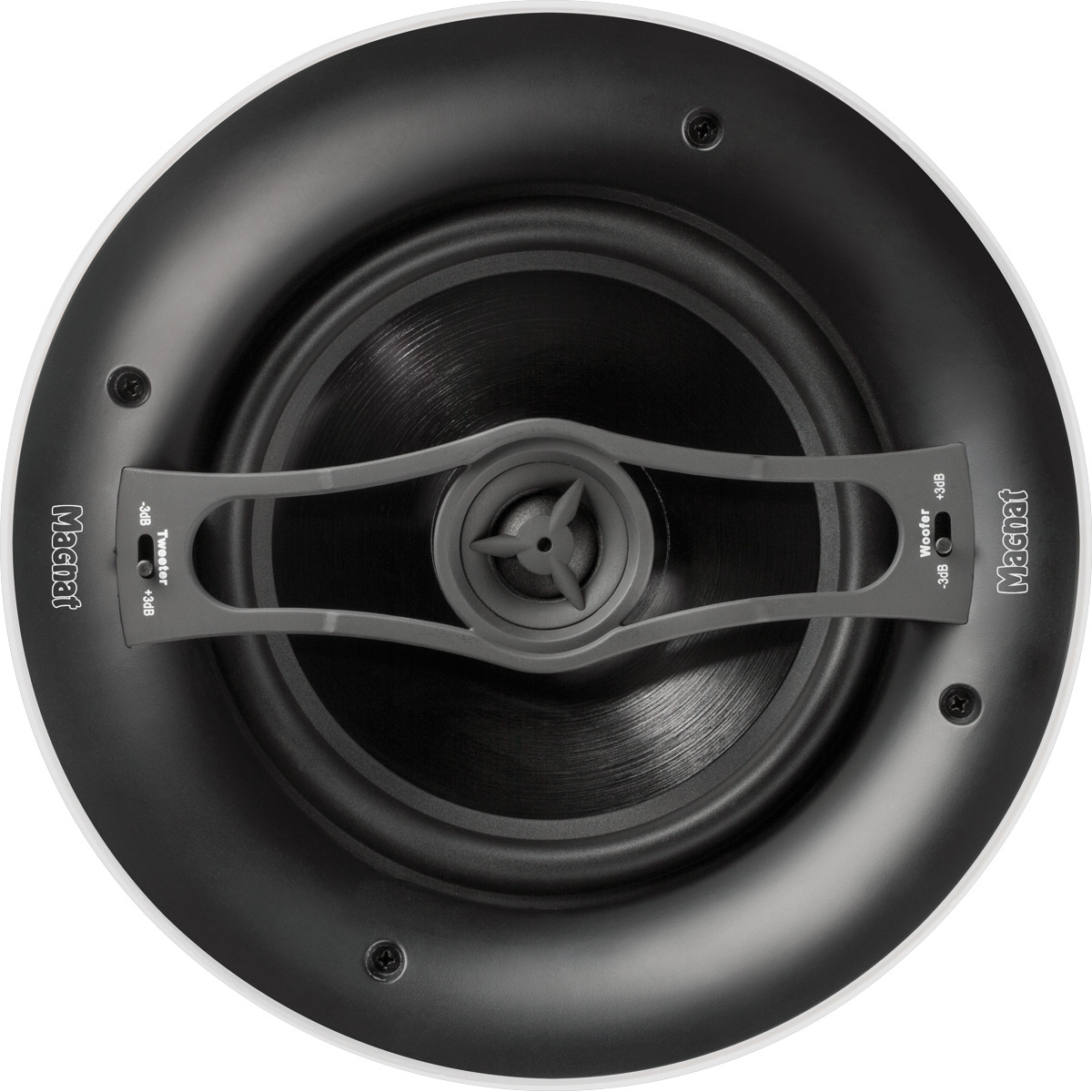 This particularly high-quality recessed ceiling speaker follows in all essential parameters of the Magnat Quantum technology. Like traditional home-audio boxes, the ICQ 82 is equipped with woofer and mid-tone diaphragms made with highly stable and rigid anodized ceramic-aluminum cones. This material provides extremely accurate reproduction and reveals even the finest acoustic details. All high frequencies are reproduced with the highest pulse fidelity and freedom from distortion by a coated fabric dome tweeter. The elaborate crossover also ensures precision allocation between the high and low frequencies