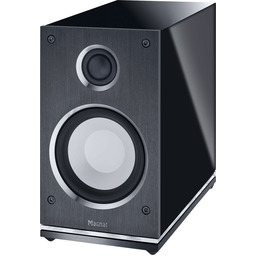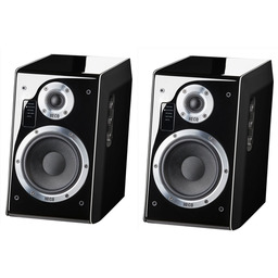 The front of the high-gloss varnished MDF body is adorned by a solid aluminium front panel with milled and burnished sound guide for the low-midrange loudspeaker and tweeter. The double base plate is also made of solid aluminium and has been combined with polished acrylic glass. Only high-quality components have been used for this two-way bass reflex system whereby the emphasis was placed on selected drivers (110 mm low-midrange loudspeaker, 25 mm dome tweeter and the also very high-quality cabling with particularly large cross-sections.)