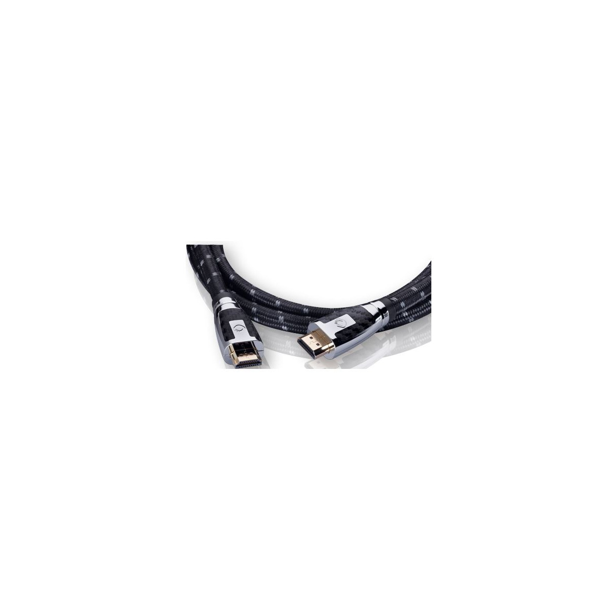 HIGH-SPEED HDMI® cable with superior technical features. The additional data channel (Ethernet channel) allows Internet-enabled AV components, e.g. Blu-ray players and AV receivers, to be connected without the need for additional network cables. The innovative inner conductor produces previously undreamt of transmission qualities due to its extremely high levels of purity. Quadruple-shielded and separated internal conductors also ensure optimal signal transfer for resolutions greater than 1080p. 24-carat gold-plated contacts connect these high-end cables almost resistance-free to a variety of devices, e.g. LCD TVs and Blu-ray players. The durable, elegant fabric sheathing and solid metal contacts with carbon inlays emphasise the exceptional quality of this 5-star product.