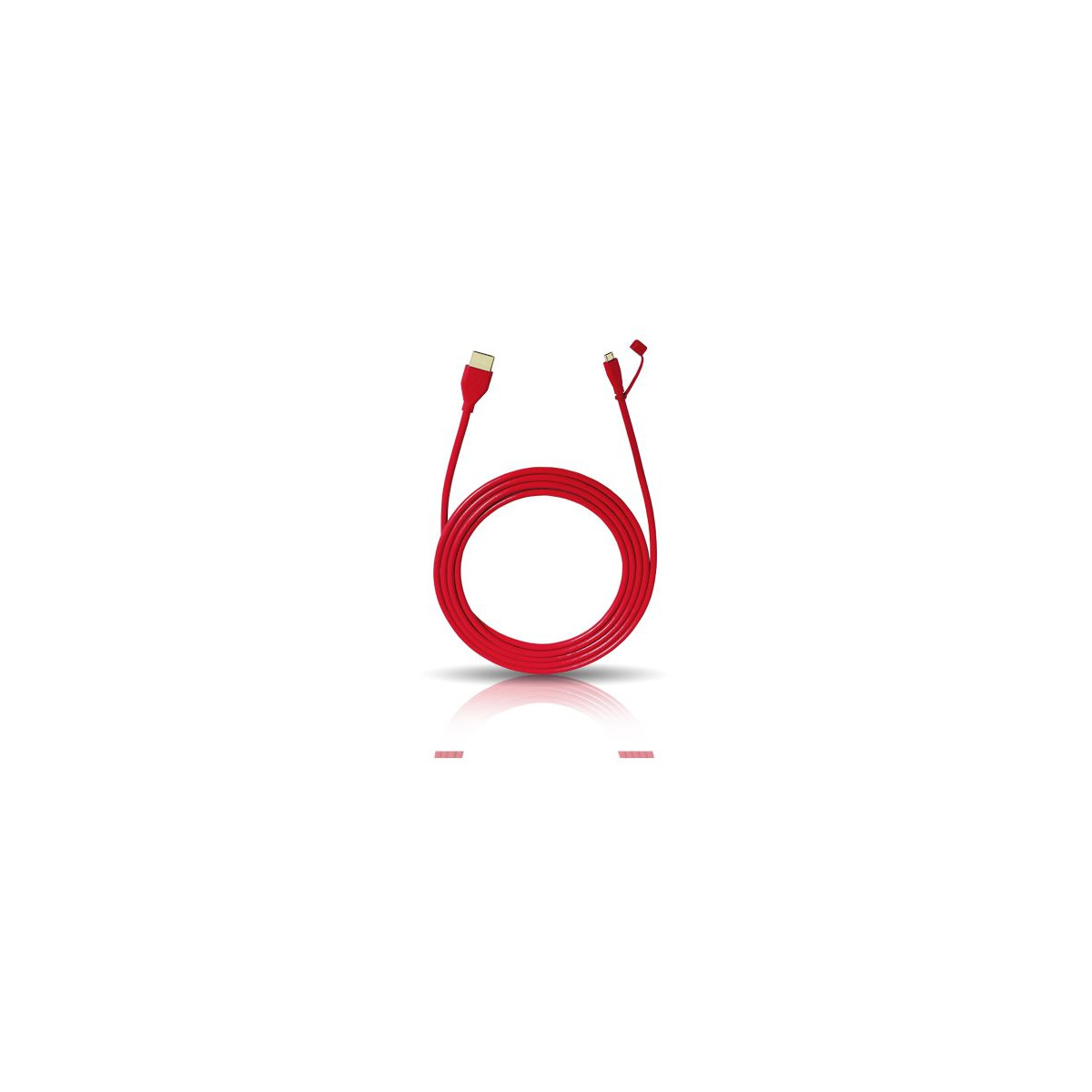 Oehlbach adapter cables for MHL*-capable multimedia devices (MHL 2.0). The adapter allows HD-capable devices to be connected to HDMI connectors on HD-TV equipment. This cable allows you to experience images and videos from smartphones, tablets and cameras – loss-free and in full HD quality – on televisions and PC screens. The high-quality i-Connect PlugX is HDCP-compatible and – with a video resolution of up to 1080p – is state-of-the-art where the transmission of digital signals is concerned. It also supports eight-channel digital audio and therefore transmits 7.1 surround sound. Your mobile device will be automatically charged when it´s connected to an MHL-capable HDMI interface – you don´t need an additional mains adapter. Oehlbach´s i-Connect PlugX comes in an absolutely high-quality build and its very flexible sheathing makes it particularly suitable for everyday use. *MHL = Mobile High Definition Link