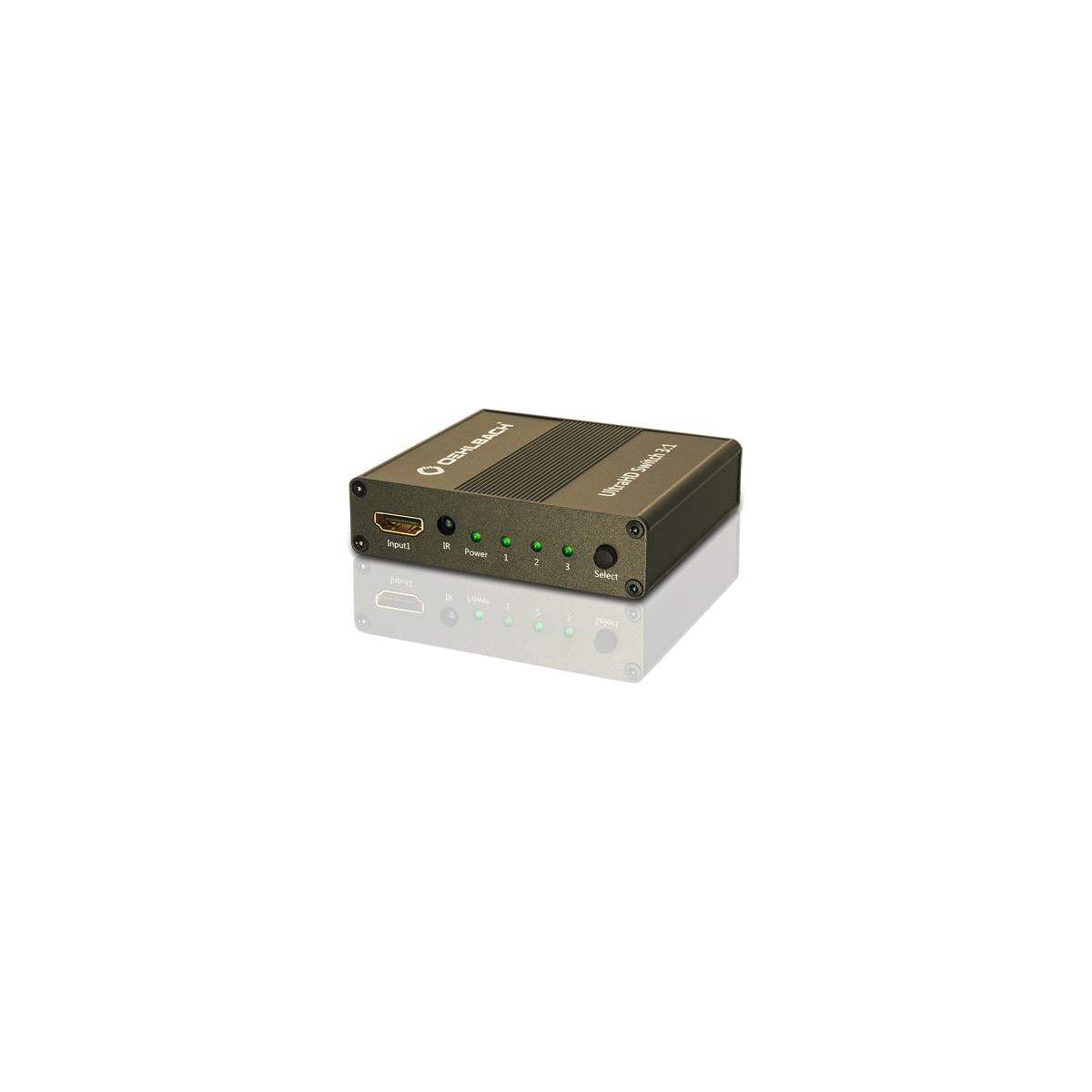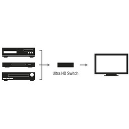 The Oehlbach UltraHD Switch 3:1 puts an end to the frequent replugging necessary for too many source devices. The device receives signals up to UltraHD resolution of 2160p with three HDMI inputs and transmits the data flow of the desired input to a connected target device without any loss of quality in each case. In addition to the UltraHD video signal, it goes without saying that all audio formats are also supported, up to and including Dolby TrueHD and DTS-HD MA as well as DSD. The three HDMI inputs as well as the HDMI output are 24 carat gold-plated and therefore guarantee the highest possible transmission reliability. The solid metal enclosure is compact with dimensions of 95 x 25 x 86 mm (wxhxd) and weighs just 136 g. A remote control is provided for convenient changing between the individual inputs.