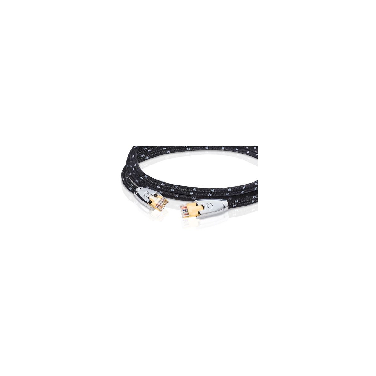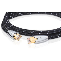 Very well-made and efficiently shielded CAT 6 network cable for frequencies up to 600 MHz / 1000 Mbit. The special cable design with four twisted pairs of wires and aluminium foil shielding ensure interference has little chance of disrupting the transmitted signal. The rugged fabric sheath and the solid metal connectors ensure perfect everyday practicality on one hand, and a sophisticated appearance on the other. Suitable for Ethernet 10BaseT, 100BaseTX, 100BaseVG, 1000BaseT, ISDN, telephone, etc.
