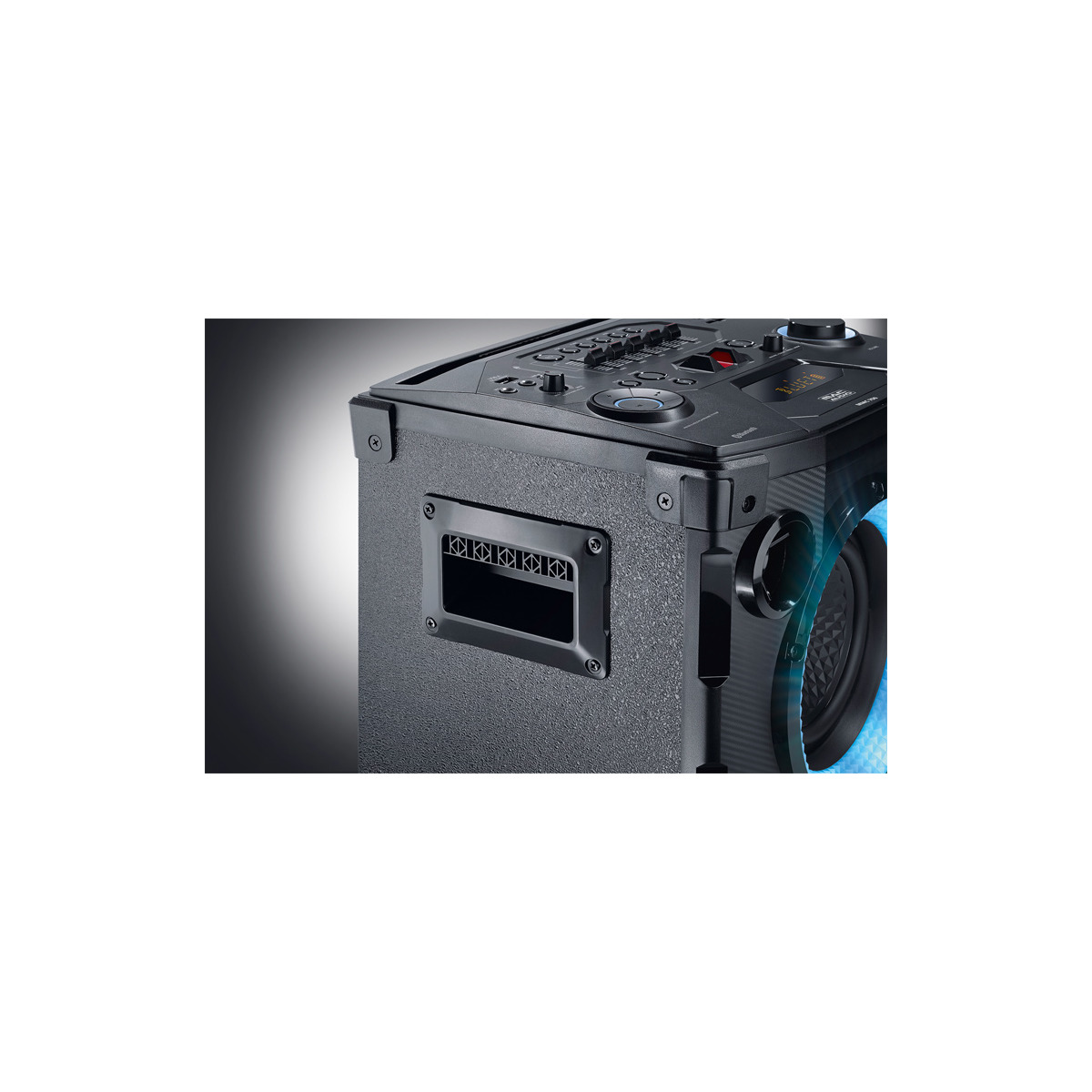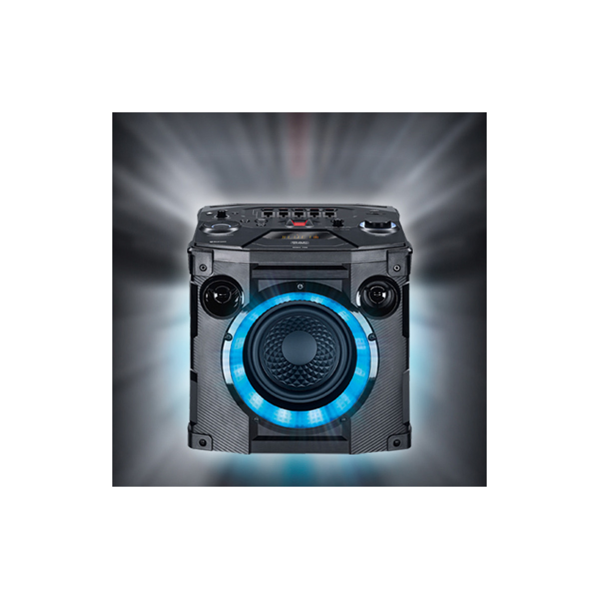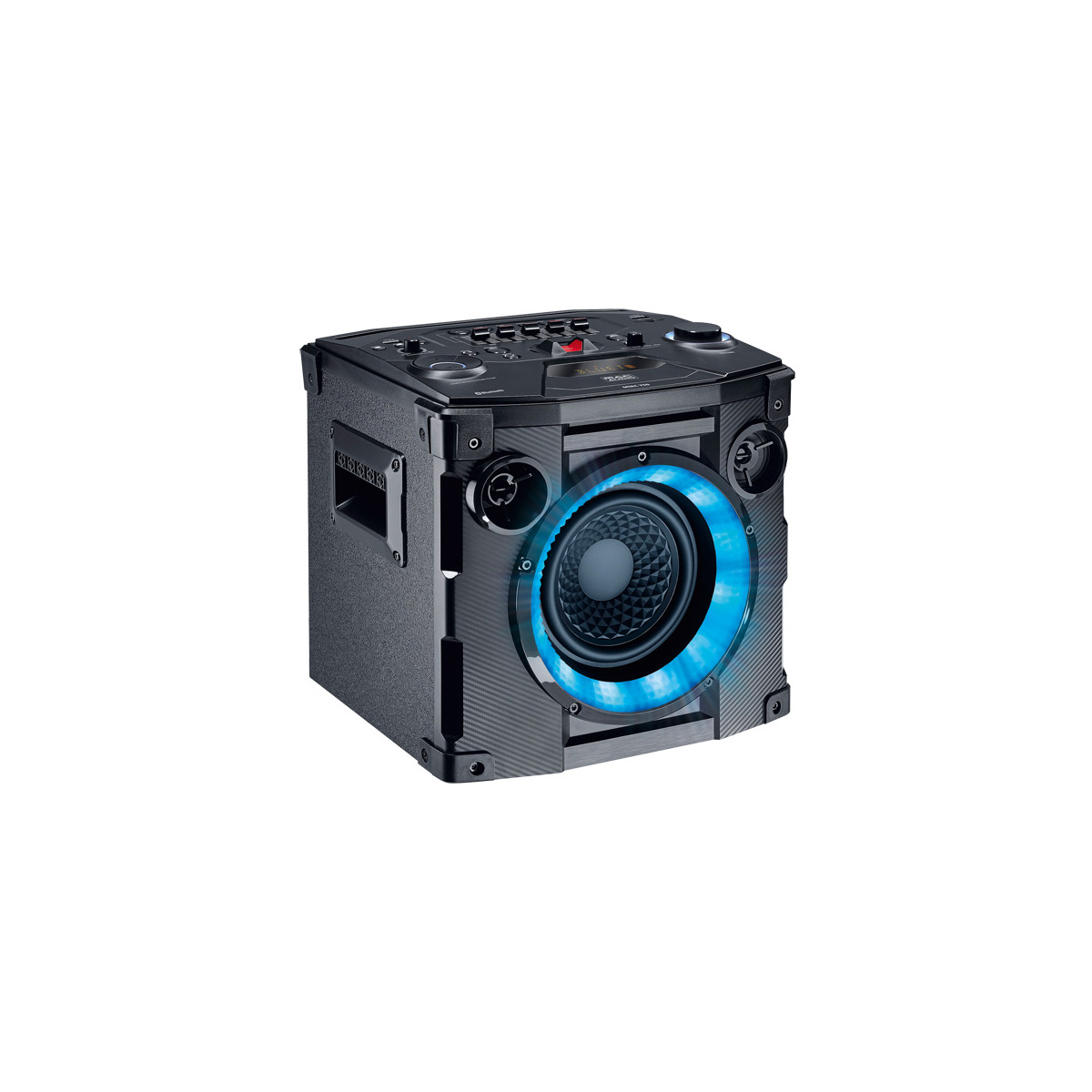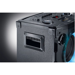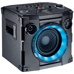 A full 200 watts of maximum power output ensures powerful sound and an exuberant party mood with the MMC 750. The loudspeaker, weighing in at around 7 kg, is equipped with Bluetooth, USB and SD card reader as well as a VHF tuner. The additional bass power boost of the Bluetooth speaker offers the possibility of reproducing the sound with a bit more bass foundation. The built-in high-performance battery enables up to 12 hours playing time and can even supply external devices with power via USB. The integrated LEDs providing a matching light show.
