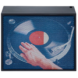 The speaker grille with the designer printing in integrated in the high-quality plastic enclosure with a soft touch coating. Located in the bass reflex housing is a 38 mm wide-band unit and an especially efficient amplifier for maximum level. The powerful high-performance battery supplies the necessary power for 4 hours of music playback. The wireless feed is provided by way of the latest Bluetooth version 4.2 or via a 3.5 mm AUX IN input from the MP3 player.