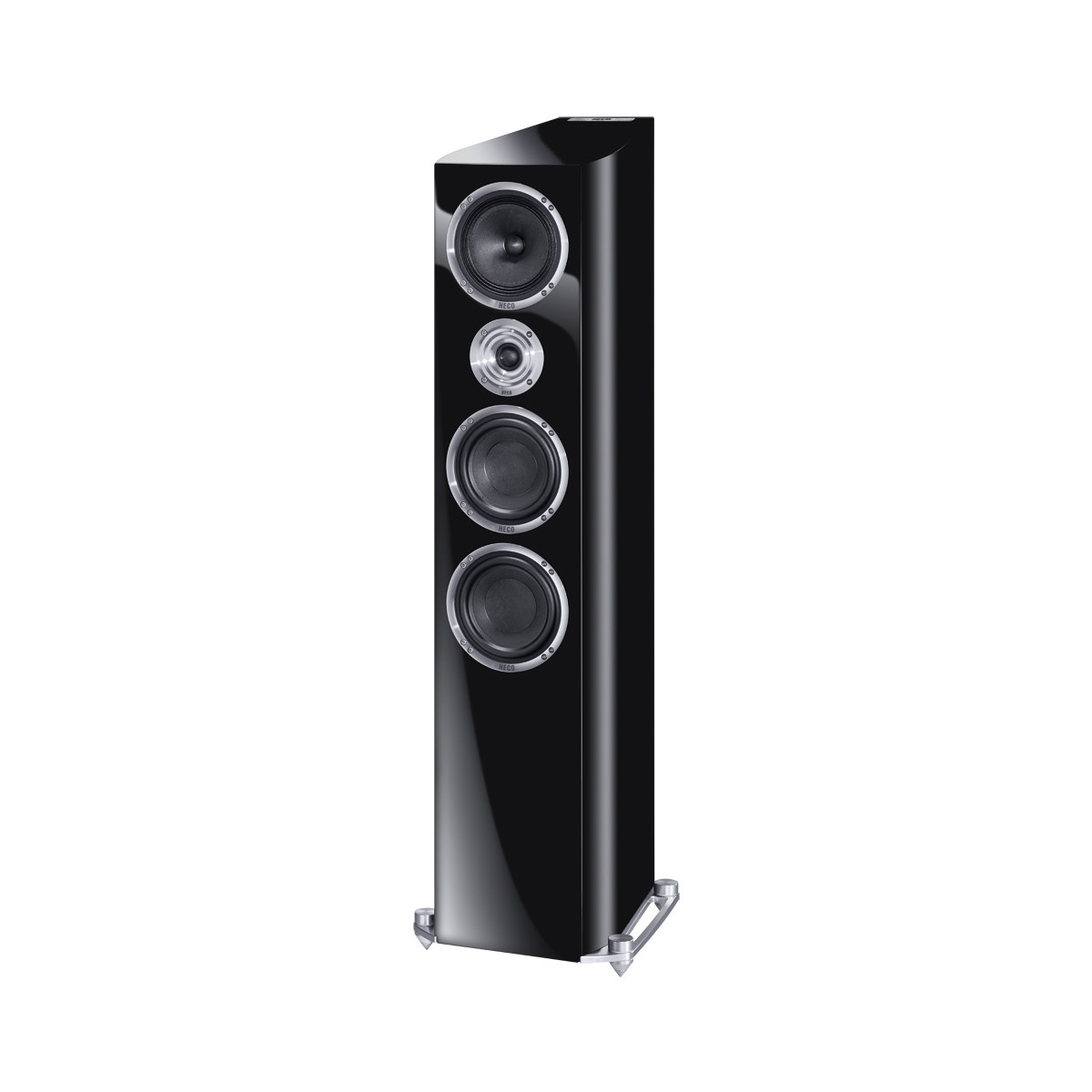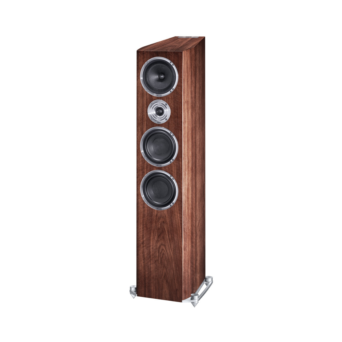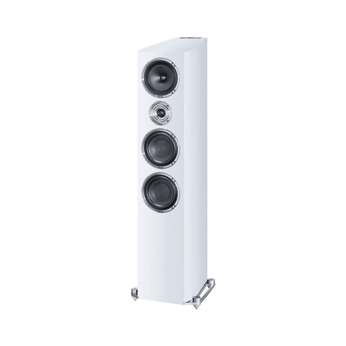 An exquisitely coordinated high-end floorstanding speaker with solid aluminum struts and height-adjustable metal spikes. The optimal weight distribution and acoustic decoupling from the mounting surface ensure an audiophile listening experience of the highest level. All of the frequencies above approx. 2,800 Hz are catered for by the newly developed Fluktus tweeter with its 30 mm PFC dome. The computer-optimized multi-wave front panel of the tweeter ensures perfect dispersion properties, even when it comes to demanding music and film sequences. The bass and mid-range frequencies are catered for by three 170 mm chassis, which accommodate two woofers and a midrange driver. All chassis are equipped with the tried and tested HECO kraft paper cone, which is renowned for its audiophile sound characteristics and high level stability