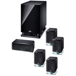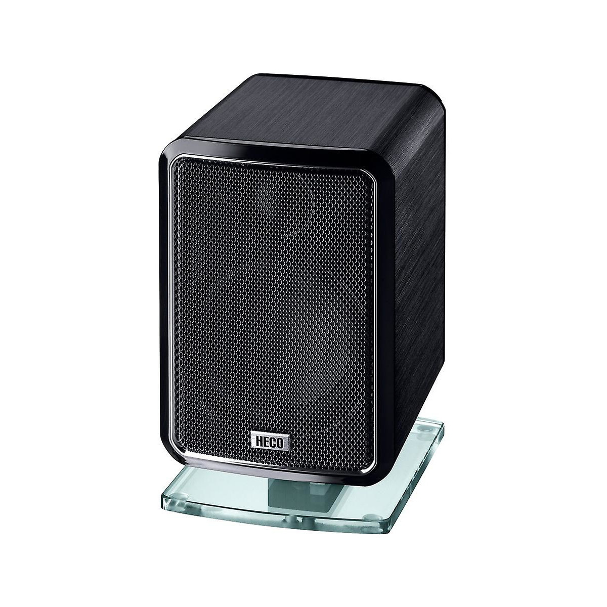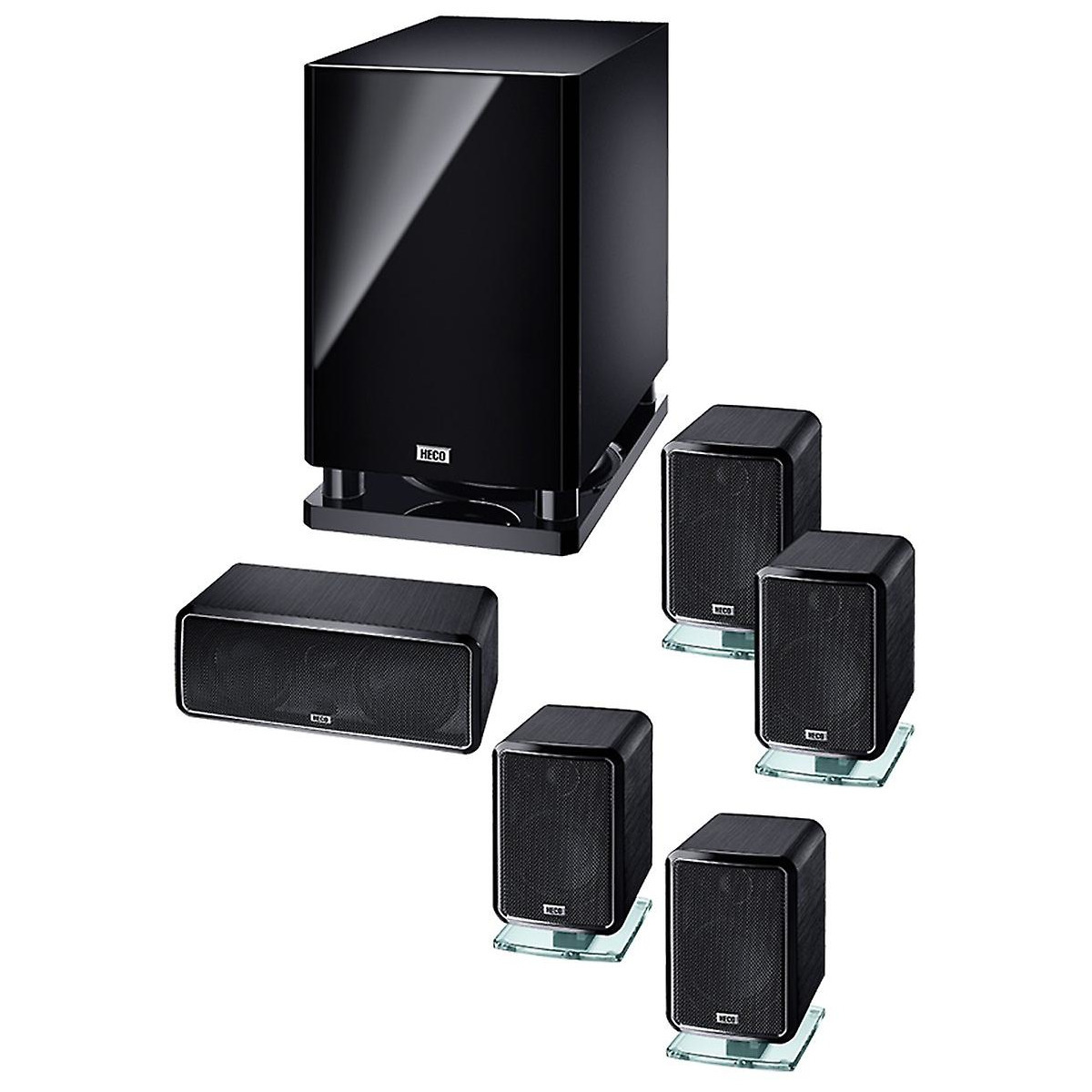 Ambient 5.1 A5. 1-cinema-system with active Subwoofers HECO ambient 5.1a is a particularly high-quality, compact multichannel speaker system. A 2-way system from Klippel-optimiertem inside the satellite with aluminium housing 75 mm deep-midrange and a high-quality 20 mm fabric dome tweeter. The centre speaker has a second low midrange driver for optimal home theatre dynamics. The bass Foundation controls the powerful Down fire subwoofer with built-in power amplifier. His hardened 200 mm paper cone maintains a defined distance to the ground, providing rich and precise bass. Phase, frequency and level are adjustable for optimum adaptation to the set. Included are four attractive feet and practical wall holder for the satellites, a similarly to the system matching floor stand is available as an option.