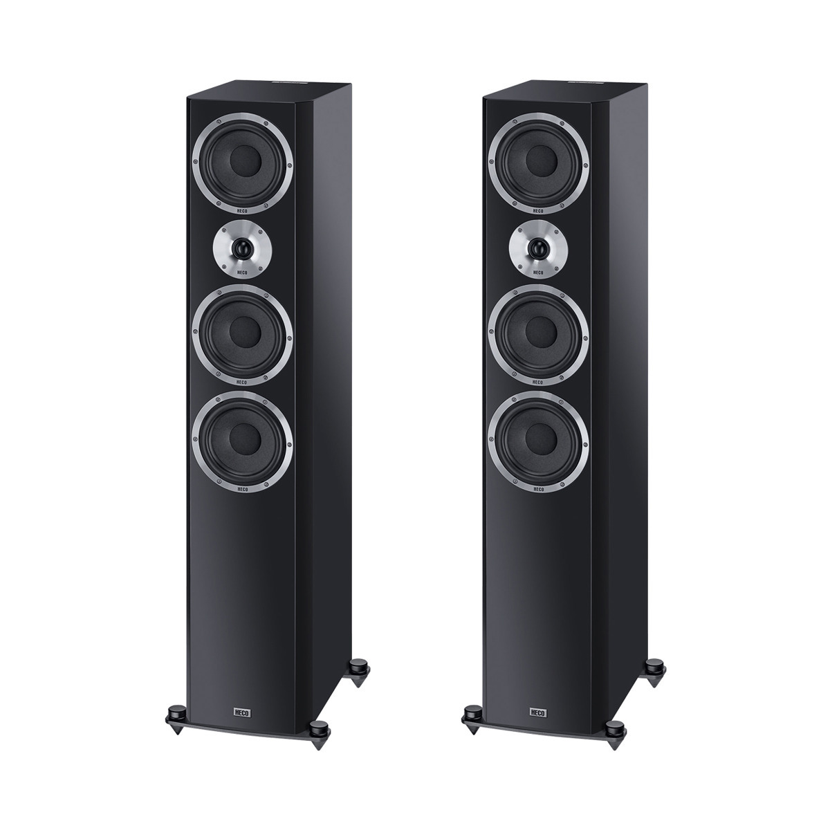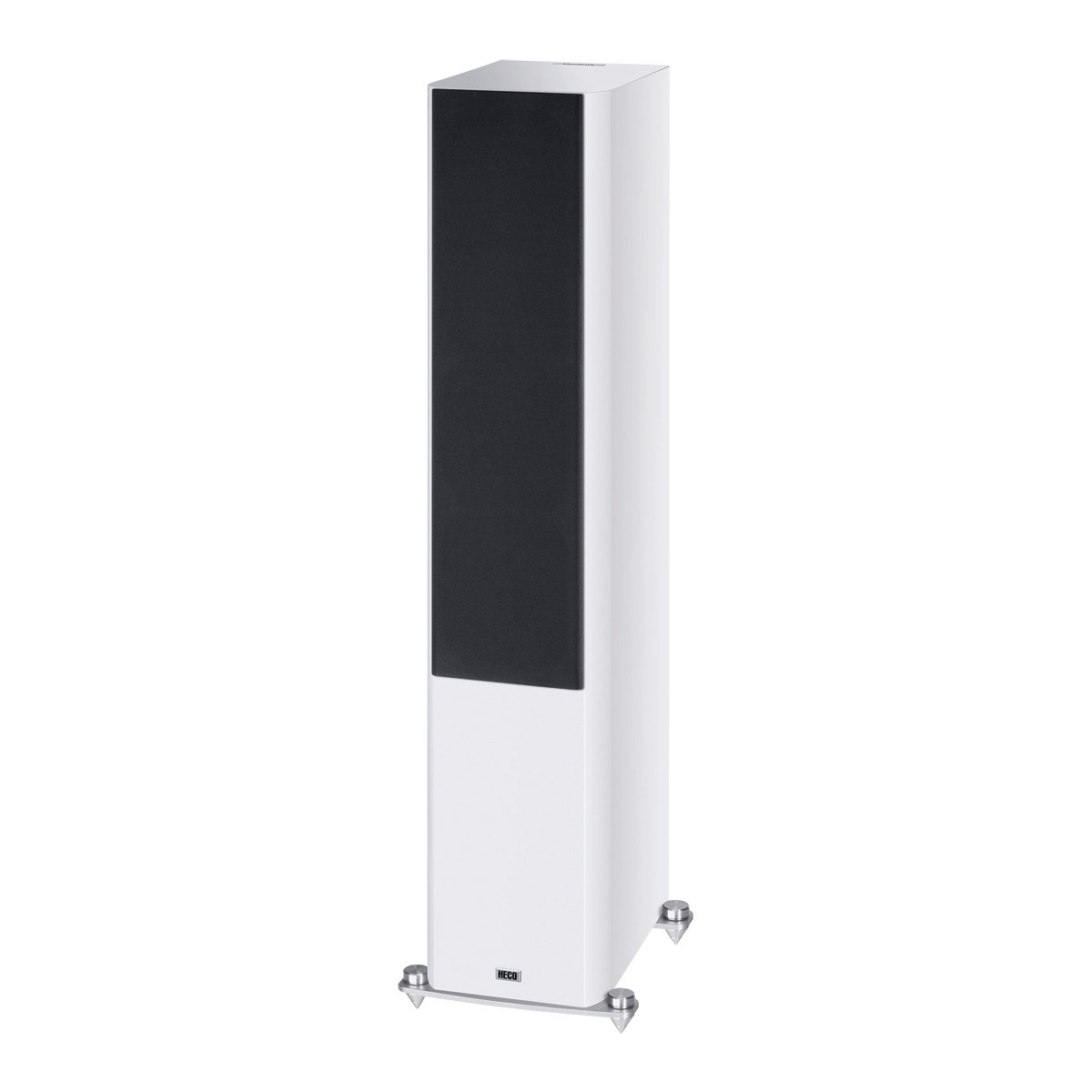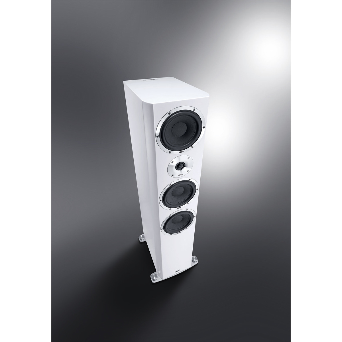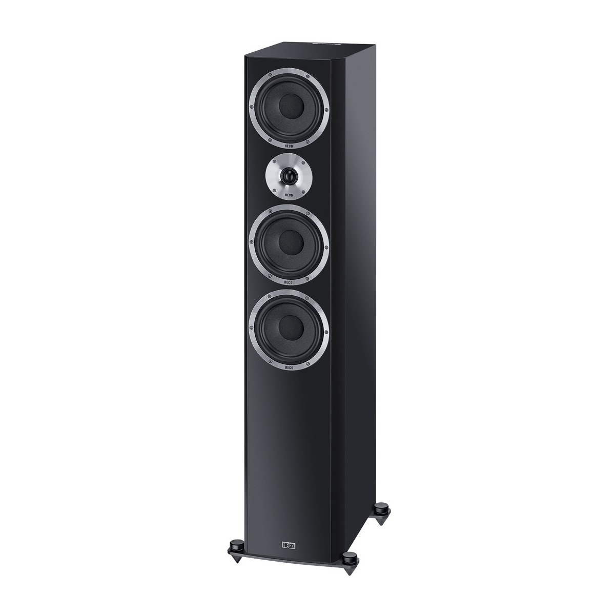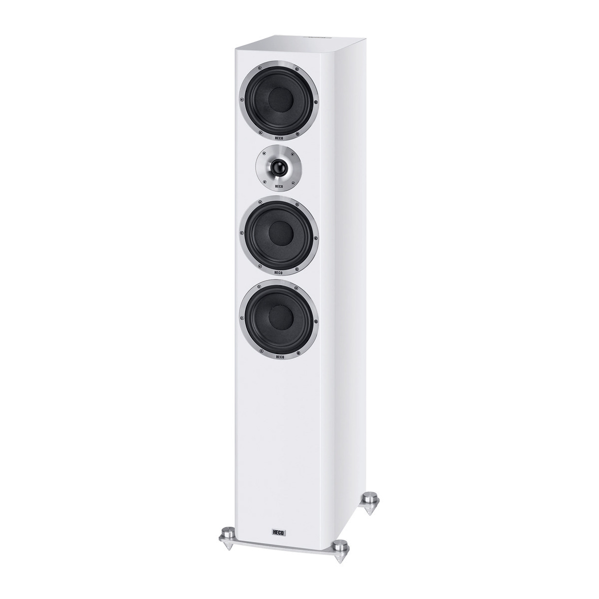The fully-fledged 3-way bass reflex speaker is the flagship model in Heco´s Elementa series and provides an extensive, authentic sound stage for both music and film. Two 170 mm woofers guarantee a solid foundation. One 170 mm woofer and a 28 mm silk compound dome with its ferrofluid cooling and powerful double ferrite magnet system are responsible for clearly structured and precise frequencies in the higher range. Woofers and midrange drivers are equipped with lightweight long fiber cones and highly resilient voice coils to ensure maximum performance and a high-speed response at all times. The sturdy, multi-braced MDF housing features rounded sides and an elegant silk matt lacquer finish, which is optionally available in black or white. The front grille can be detached, and the hidden magnetic mounts ensure the speaker casts a very elegant appearance when it is removed.