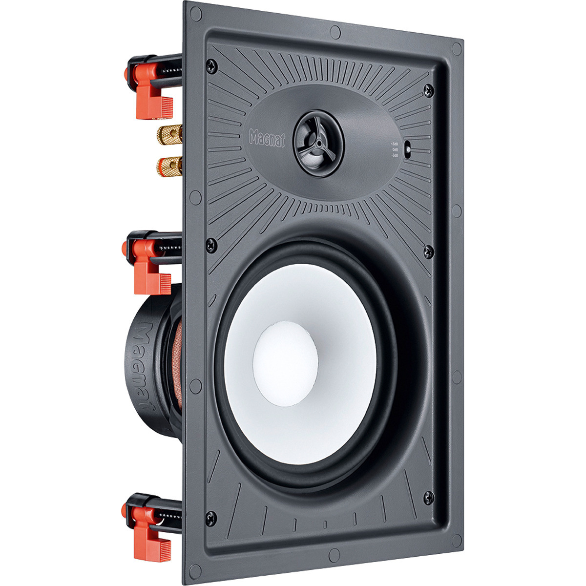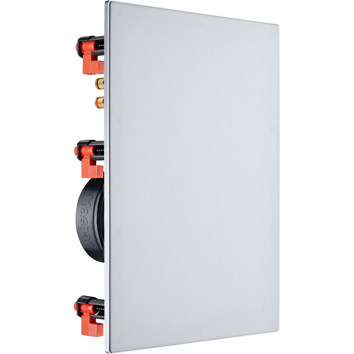 The compact version for wall installation is the IWT 162, which features one woofer and a tweeter, yet still ensures a full-blooded sound. The 16 cm woofer with its aluminum/ceramic cone and a tweeter with coated fabric dome cater for the full frequency range down to 32 Hz. The treble level can be adjusted in three stages here as well, thereby enabling a wide range of installation positions. Measuring 320 x 220 mm with a mounting depth of 102 mm, the Signature IWT 162 doesn´t pose any problems during installation. It doesn´t require a special housing and is perfectly accommodated in any drywall and from a volume of 20 liters. The IWT 162 is suitable for use as a front speaker, as a fully-fledged front channel in a home cinema setup, as well as a luxurious rear channel speaker.
