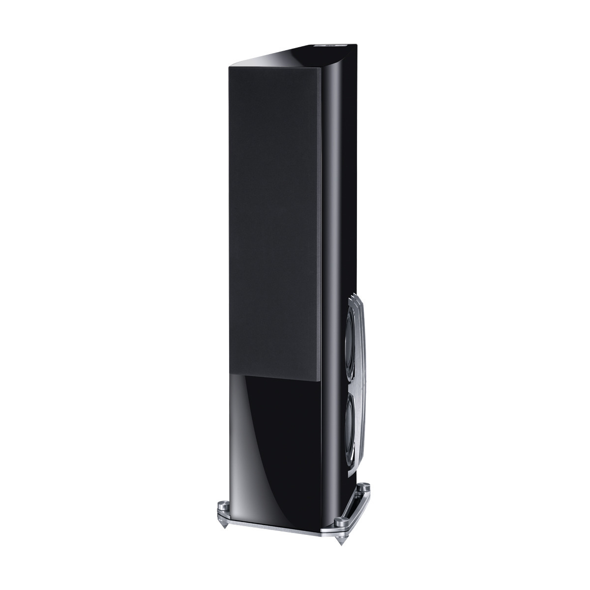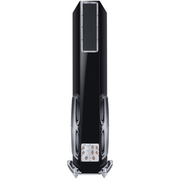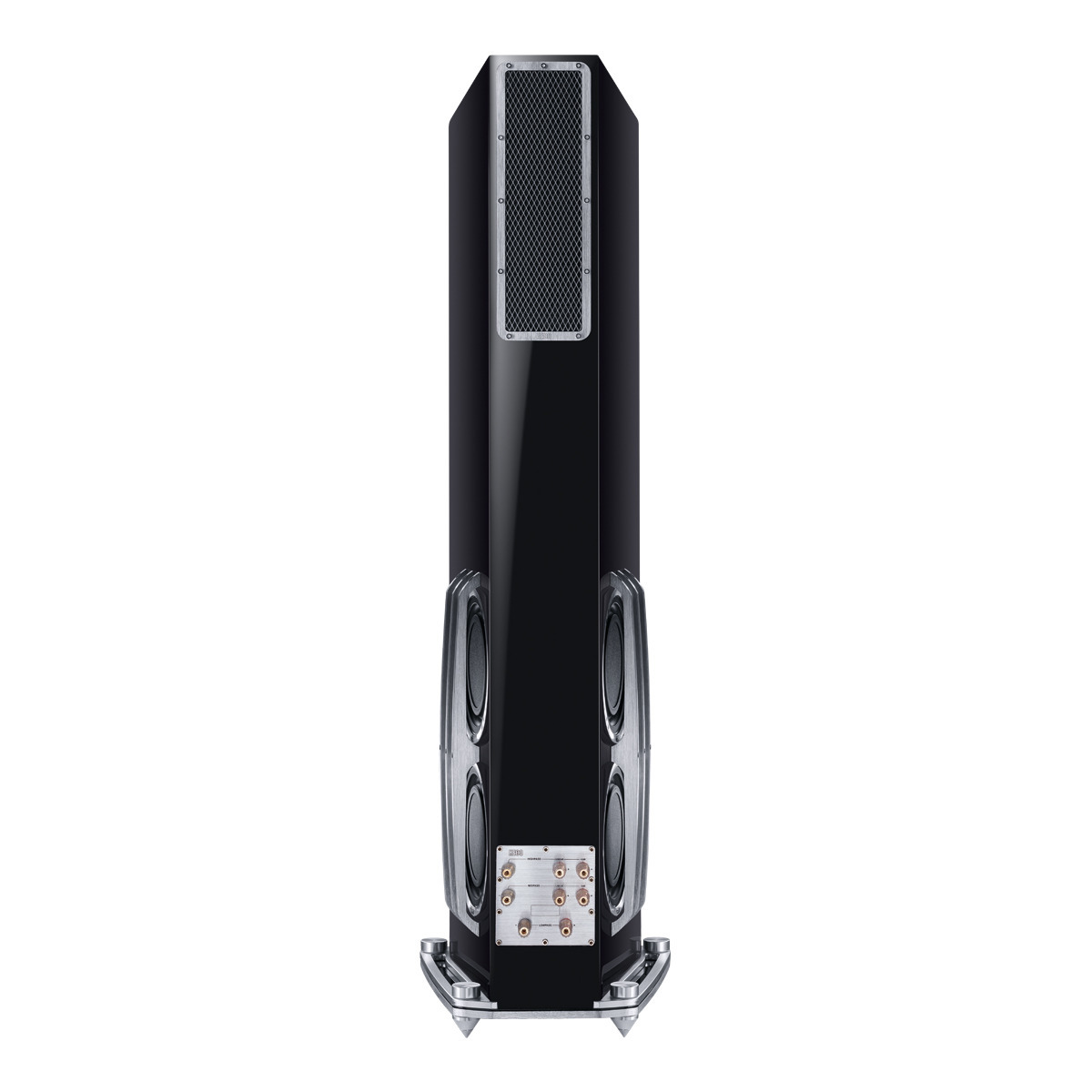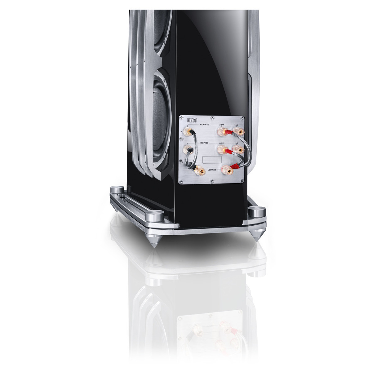 All of this is packaged in a solid enclosure with an acoustically perfect cross-section and workmanship that is second to none. Cool black, in exquisite piano lacquer of course, contrasts with solid aluminum elements, which set standards not only visually, but also in terms of construction.