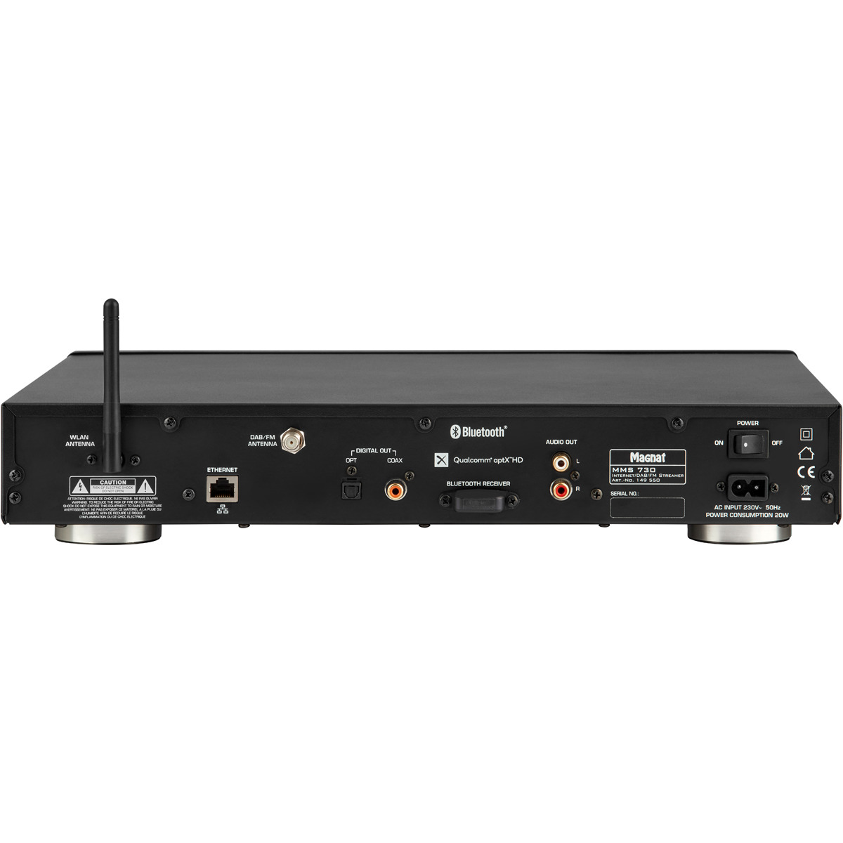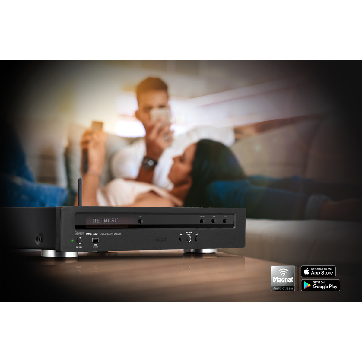 All of this is packaged in a sturdy metal housing with a solid, brushed aluminum front panel. The clear dual line display provides information in three brightness levels. All of the essential functions can be controlled with just a few operating elements, while the MAGNAT STREAMING APP offers complete access to the wide range of functions. This app can also be used to integrate and control the MMS 730 in a multi-room system, meaning you can enjoy the variety of sources in several rooms.