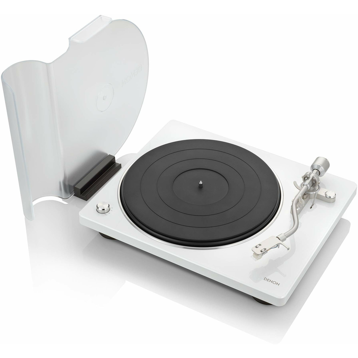 Rediscover your passion for vinyl with the Denon DP-400 Hi-Fi turntable with speed auto sensor. Strong construction and elegant design blends seamlessly into the existing Denon Design Series. The curved, horizontal tracking angled tonearm lifts automatically and stops the platter when vinyl reaches the end of playback. Weighted, belt-driven platter supports 33 1/3 rpm, 45 rpm or 78 rpm records with precision that is faithful to the original recording. Integrated phono equalizer creates an open, enveloping sound stage for your cherished albums with detailed, accurate reproduction. Includes MM cartridge and supports MC cartridges. Exclusive, removable dust cover doubles as a display stand.