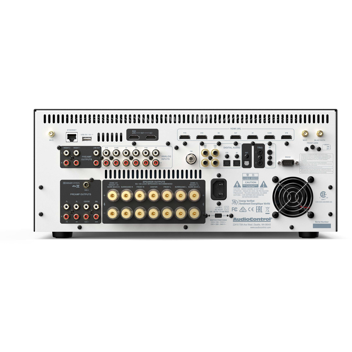 Dolby Atmos for the home represents every sound in the original cinema mix as an audio object. Extensions to the Dolby AudioTM CODECs, along with an advanced scalable algorithm, allow Dolby Atmos to be delivered via Blu-ray Disc and streaming media. Audio Control’s Immersive AV Receivers and Preamp Processors adapt the cinema experience to your home theatre using up to 12 channels (for configurations above 8 channels, additional power amplification is required), recreating the original artistic concept.