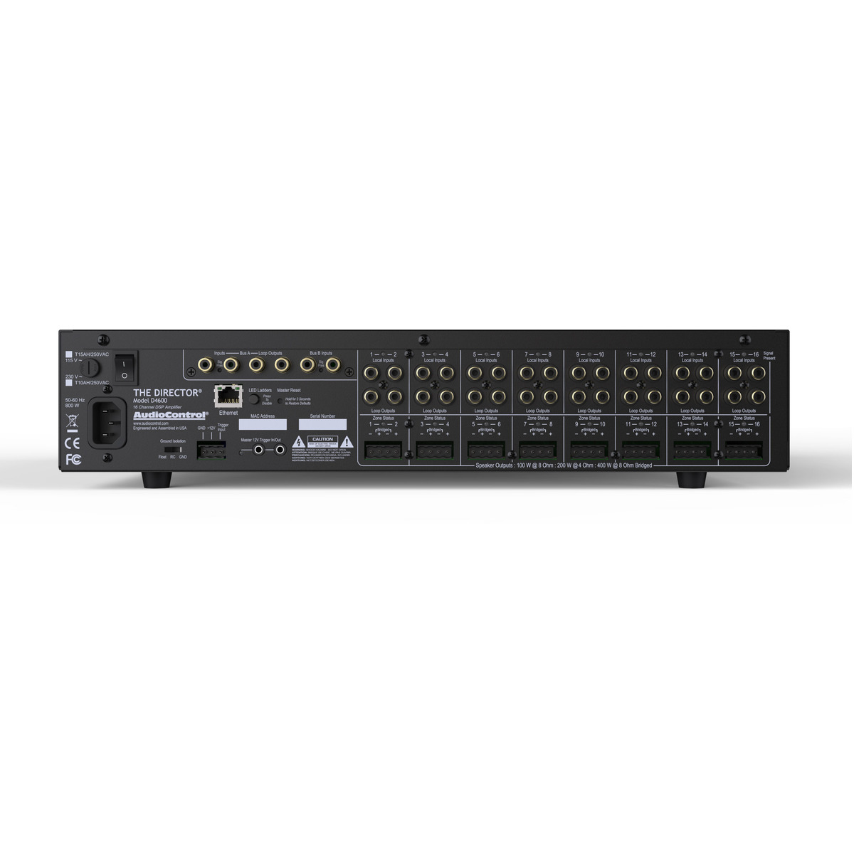 The Director® D Series gets smarter, slimmer, and more powerful. With power now up to 100 watts per channel, The Director® D Series are powerful and flexible enough for the most demanding applications. The Director Model D4600 offers both system amplification and programmable signal processing via IP. Configure graphic and parametric EQ, crossovers, volume control, zone grouping, network monitoring and more using the onboard DSP. Popular in the M Series, the D Series now feature built-in speaker profiles from members of Audio Control’s Sound Partners program, offering DSP optimized speaker calibrations from a growing list of prominent loudspeaker manufacturers. The Director Model D4600 has the benefit of operating either as a standalone DSP amplifier or as part of a 3rd party control system from companies including Crestron, Savant, RTI or Control 4.