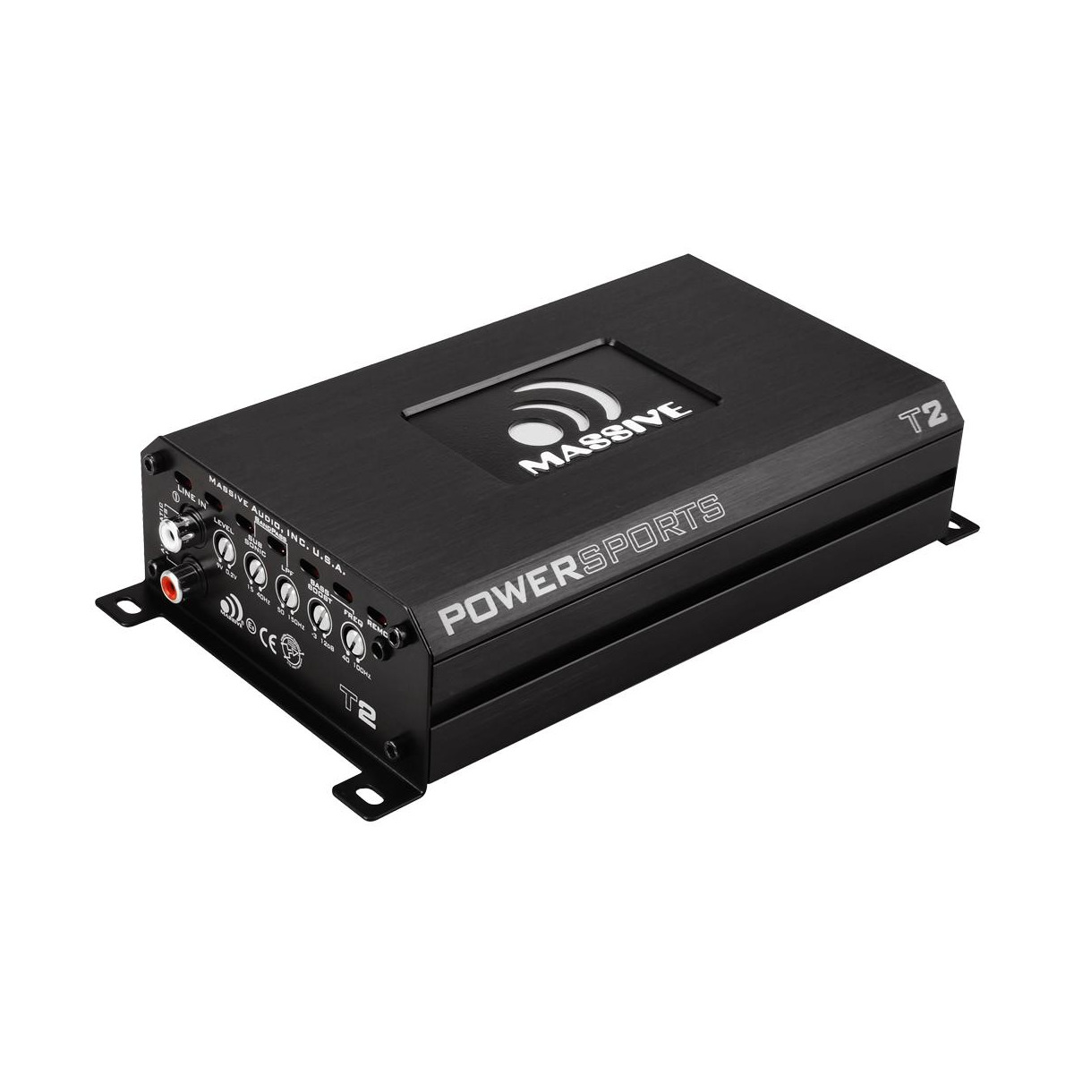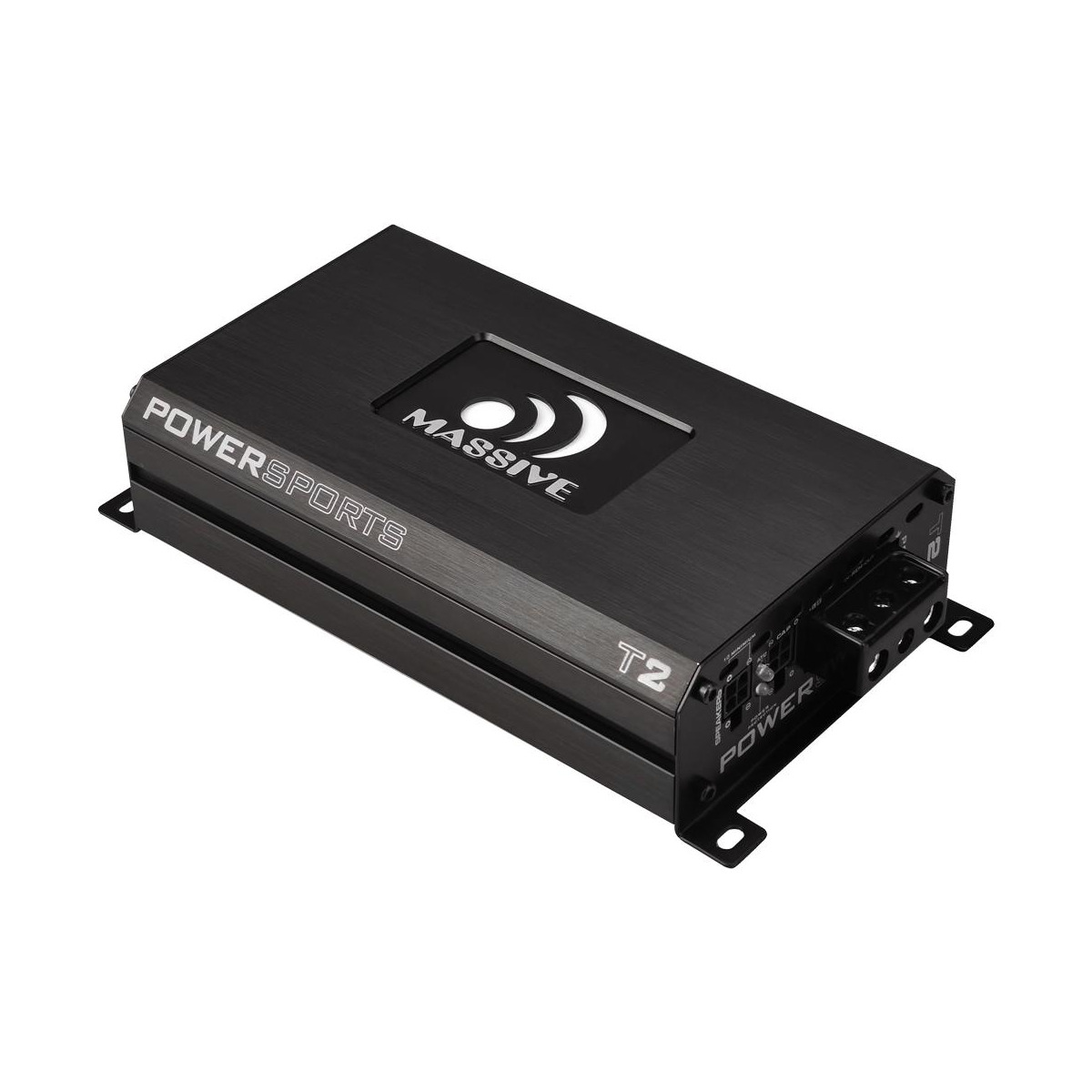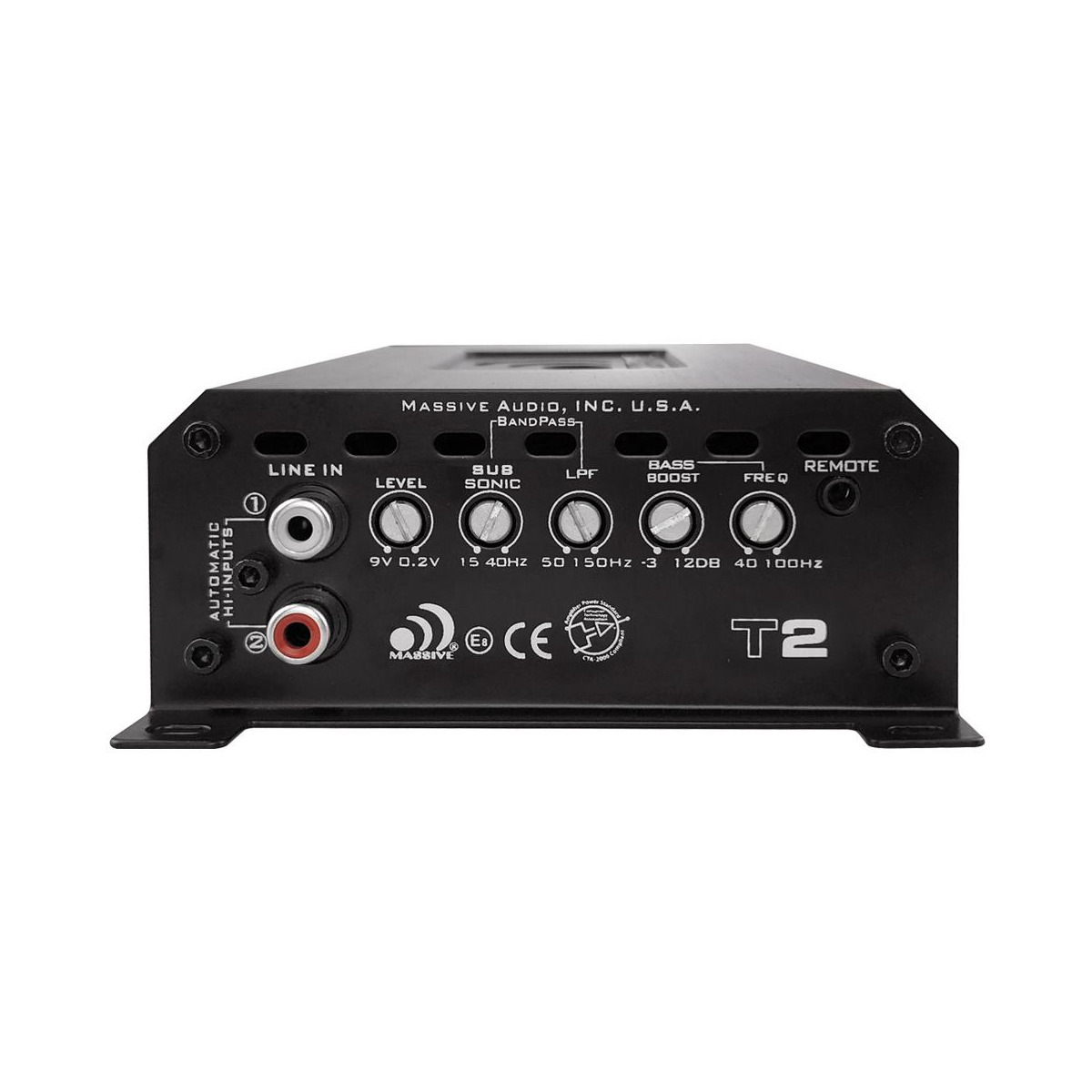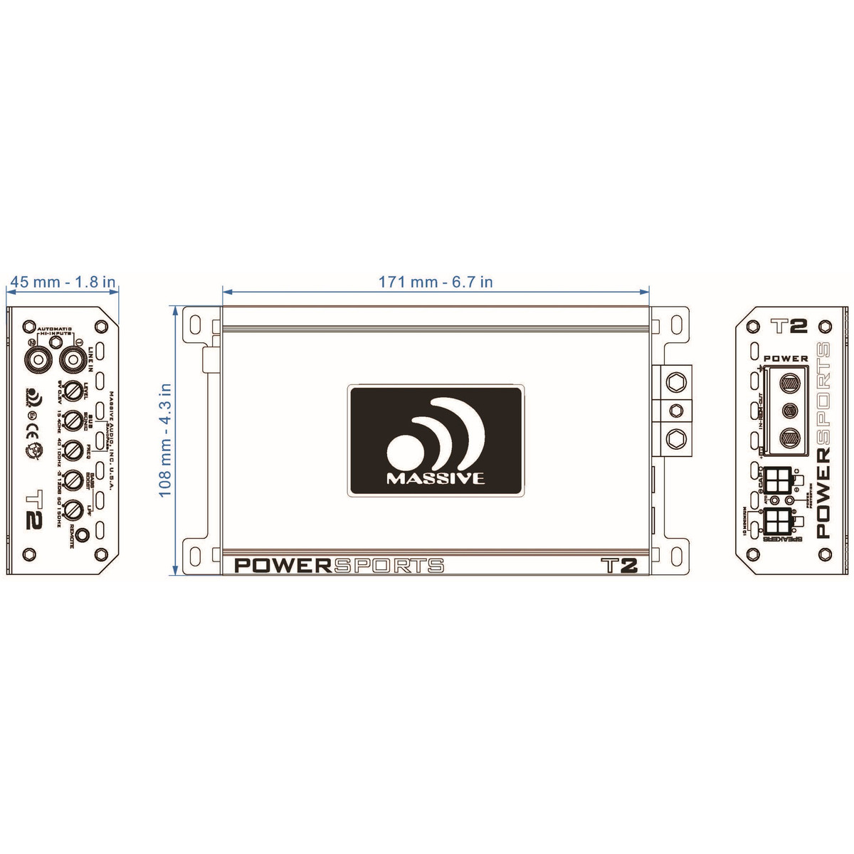 Massive Audio Trident Series Amplifiers come dressed in black anodized aluminum heat-sinks with stainless steel end plates and blue backlit logos.