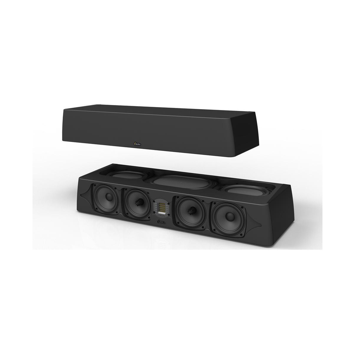 The top of the Supercentres line-up is the reference-performance Supercentres Reference, the perfect match for large Golden Ear home theatre systems. Only 35” wide, it includes four 5-1/4" drivers utilizing the focused-field magnet structure developed for the Triton Reference, the Golden Ear Reference high-gauss High Velocity Folded Ribbon tweeter, and three planar passive radiators. Our unique linear-phase crossover network employs a fully balanced topology which reduces stray capacitances for dramatically improved clarity. It utilizes precision film capacitors and special internal wiring to perfectly blend the drivers for a seamless homogeneous sound. There are three separate internal chambers: a larger one in the centre which contains two 5-1/4˝ drivers which run up to meet the tweeter and are coupled to the larger, 7˝ x 10˝ passive radiator in the centre, and two smaller ones which each contain a special 5-1/4˝ driver engineered for low frequency response, which runs up to 500 Hz, and is coupled to one of the smaller, 6-3/4˝ x 8˝ passives