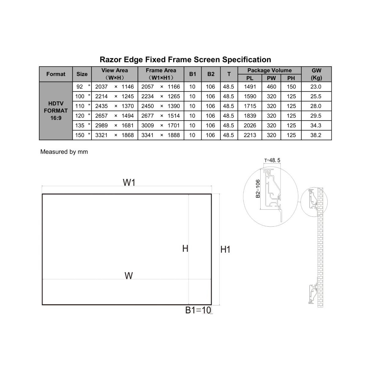 -Black backing stops projected light travelling through the screen, enhancing contrast level, included for fixed frame screens as customer‘s requirements
