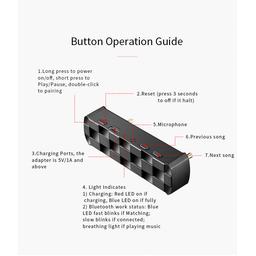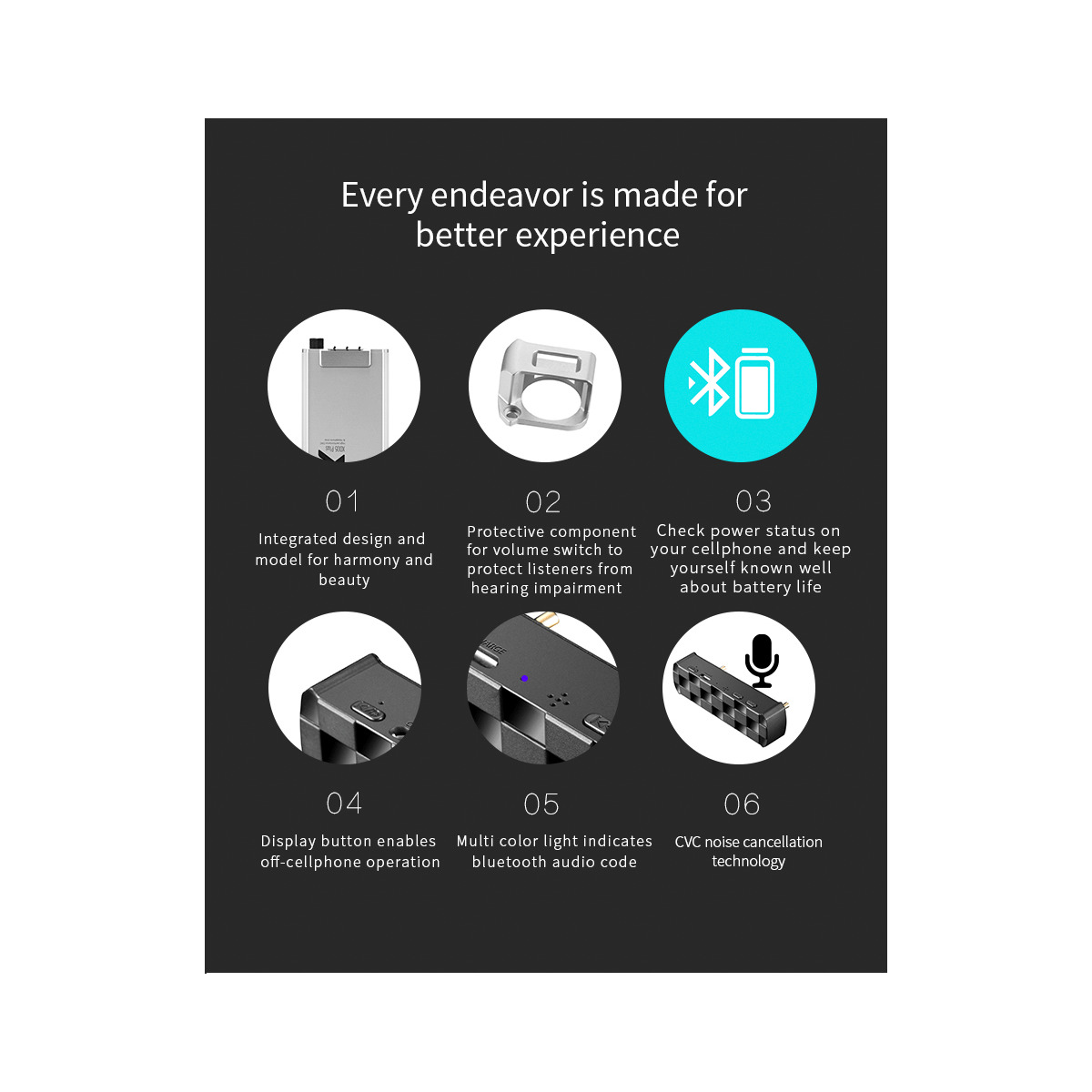Hold power button to start up 05BL PRO connect it with Bluetooth device. Display music to enjoy beautiful melody.