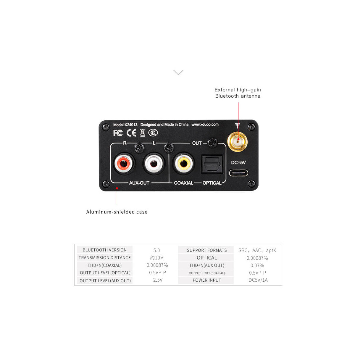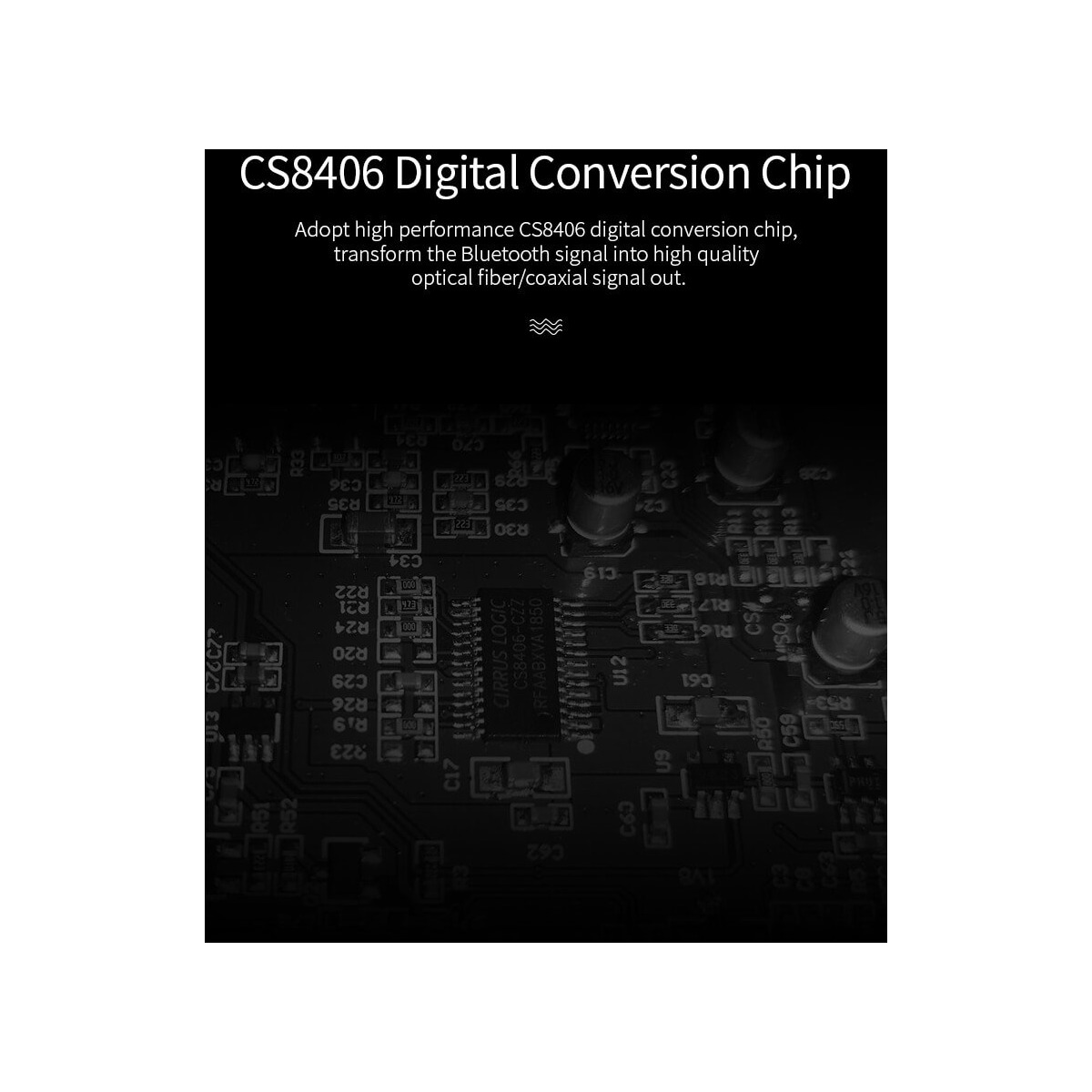 Adopt high performance CS8406 digital conversion chip, transform the Bluetooth signal into high quality optical fiber/coaxial signal out.