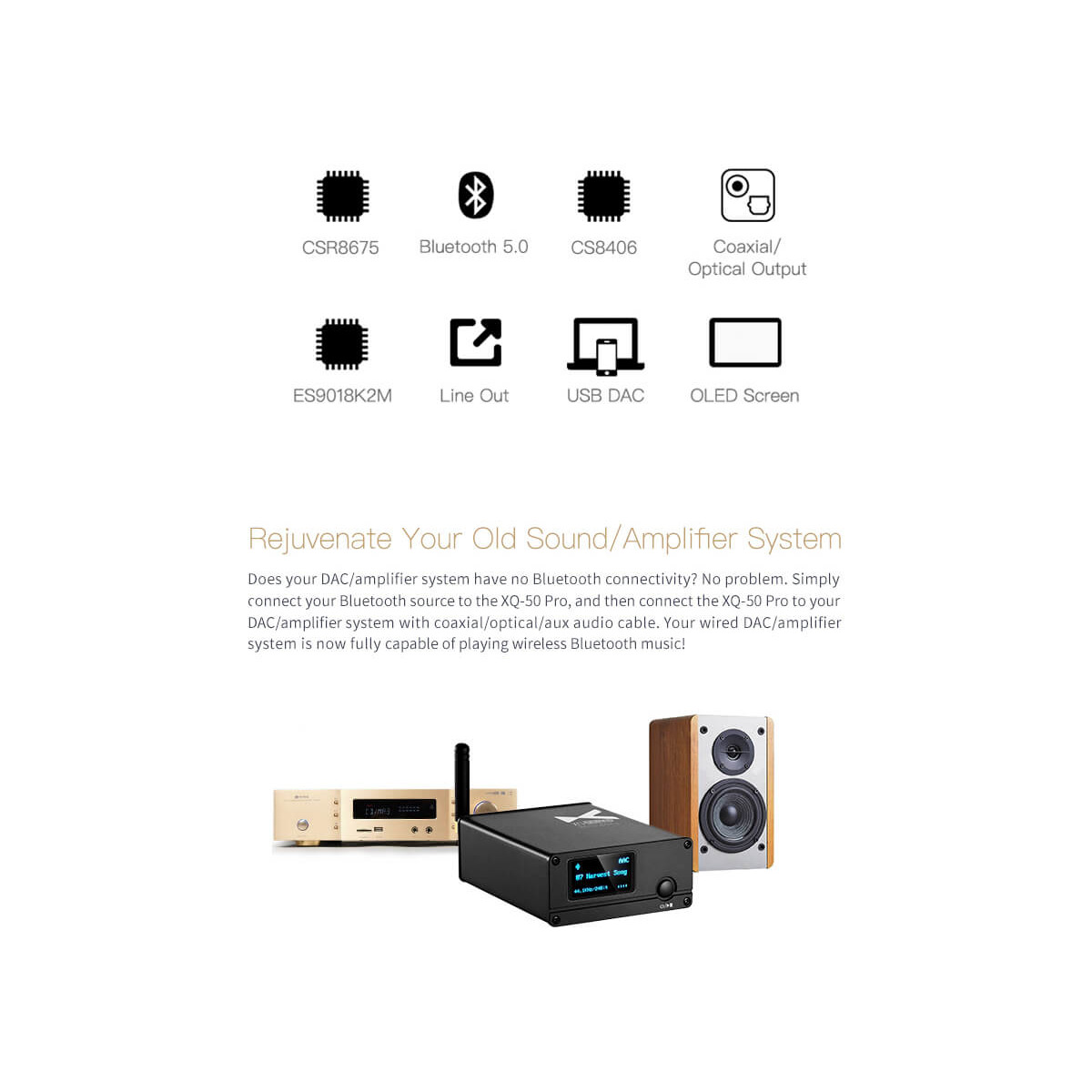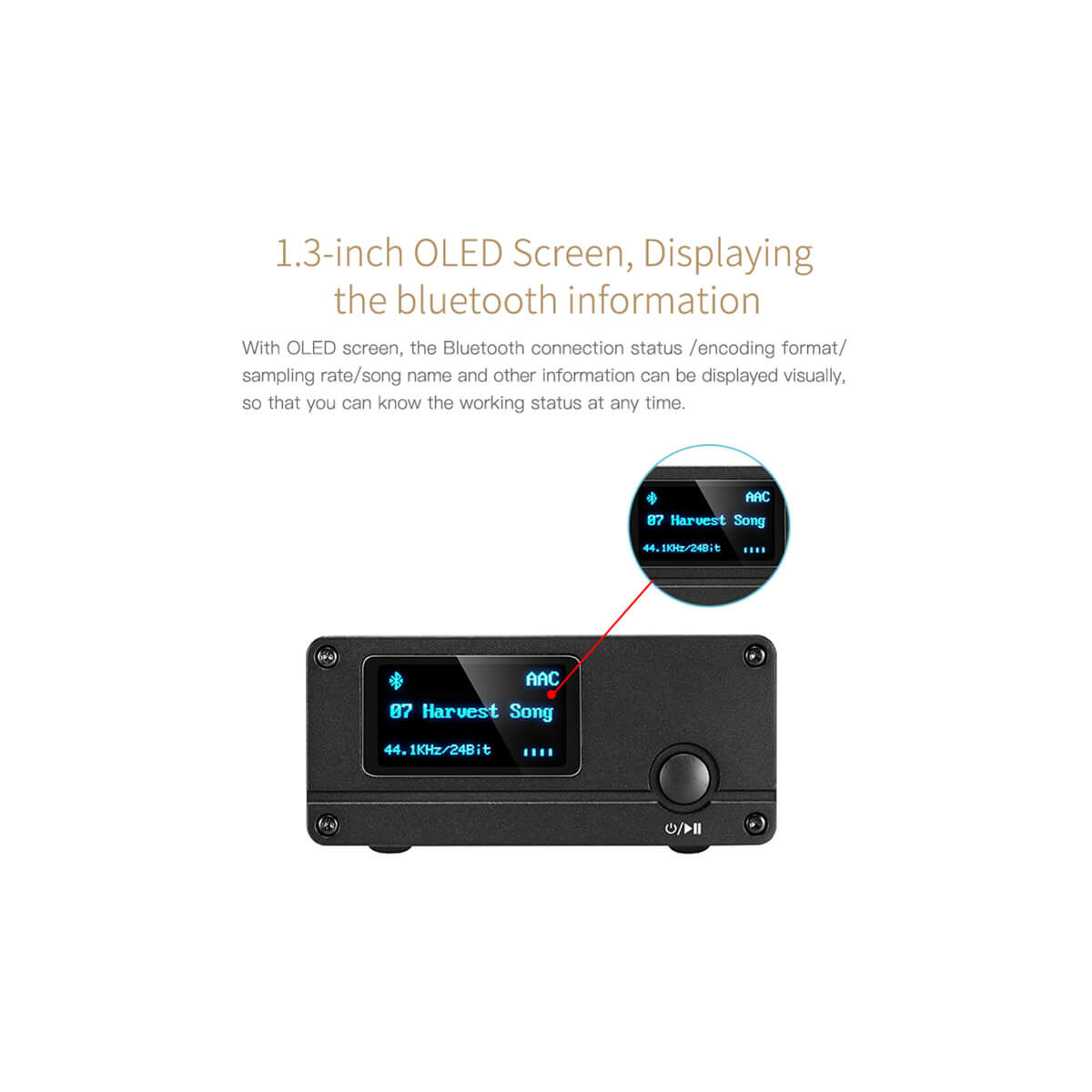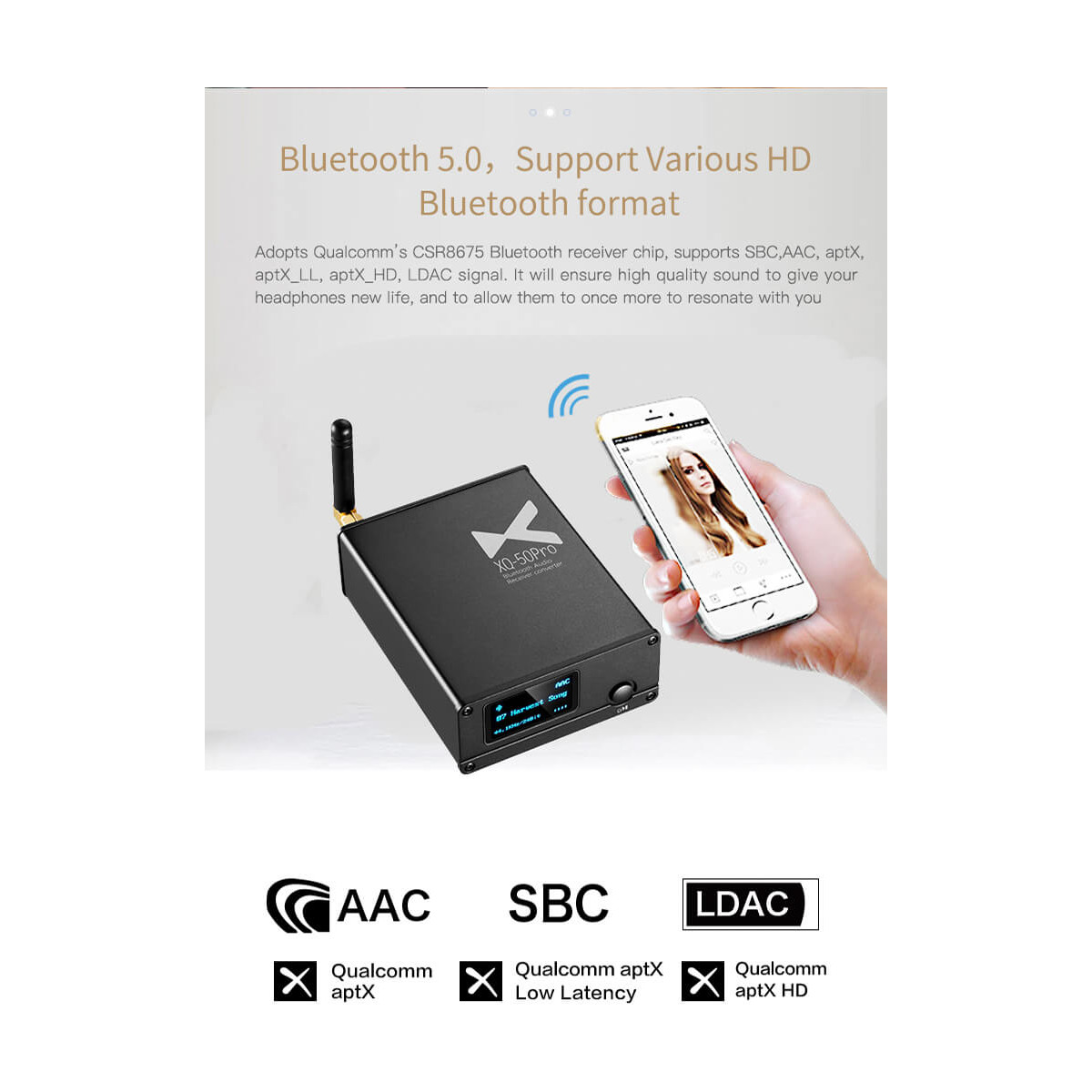 Bluetooth 5.0: supports a variety of high-definition Bluetooth formats: Adopts the Qualcomm CSR8675 Bluetooth receiver chip, supporting AAC / SBC / aptX / aptX_LL / aptX_HD / LDAC audio encoding Bluetooth format.