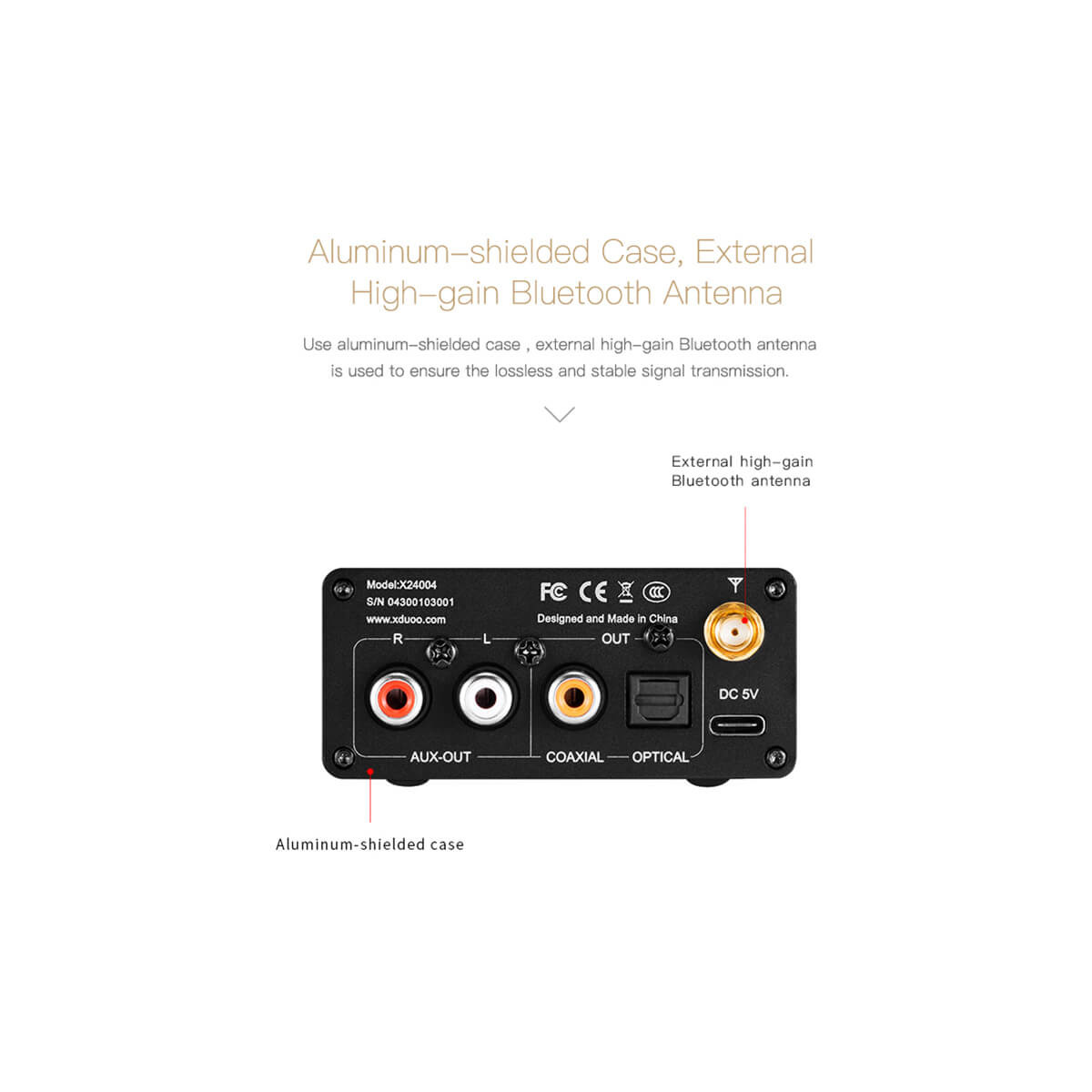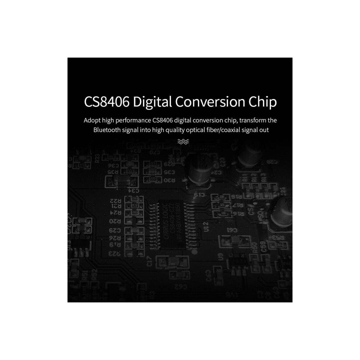 CS8406 conversion chip: Adopts high-performance CS8406 digital audio conversion chip,and convert Bluetooth signal to high-quality Optical / Coaxial signal output.
