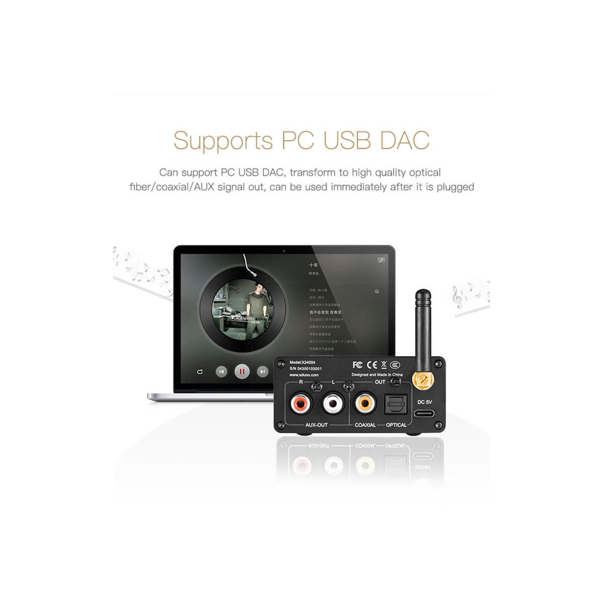 Support PC USB DAC: Support to connect the computer as a USB sound card, plug and play, and convert it into high-quality Coaxial / Optical / Analog signal output.