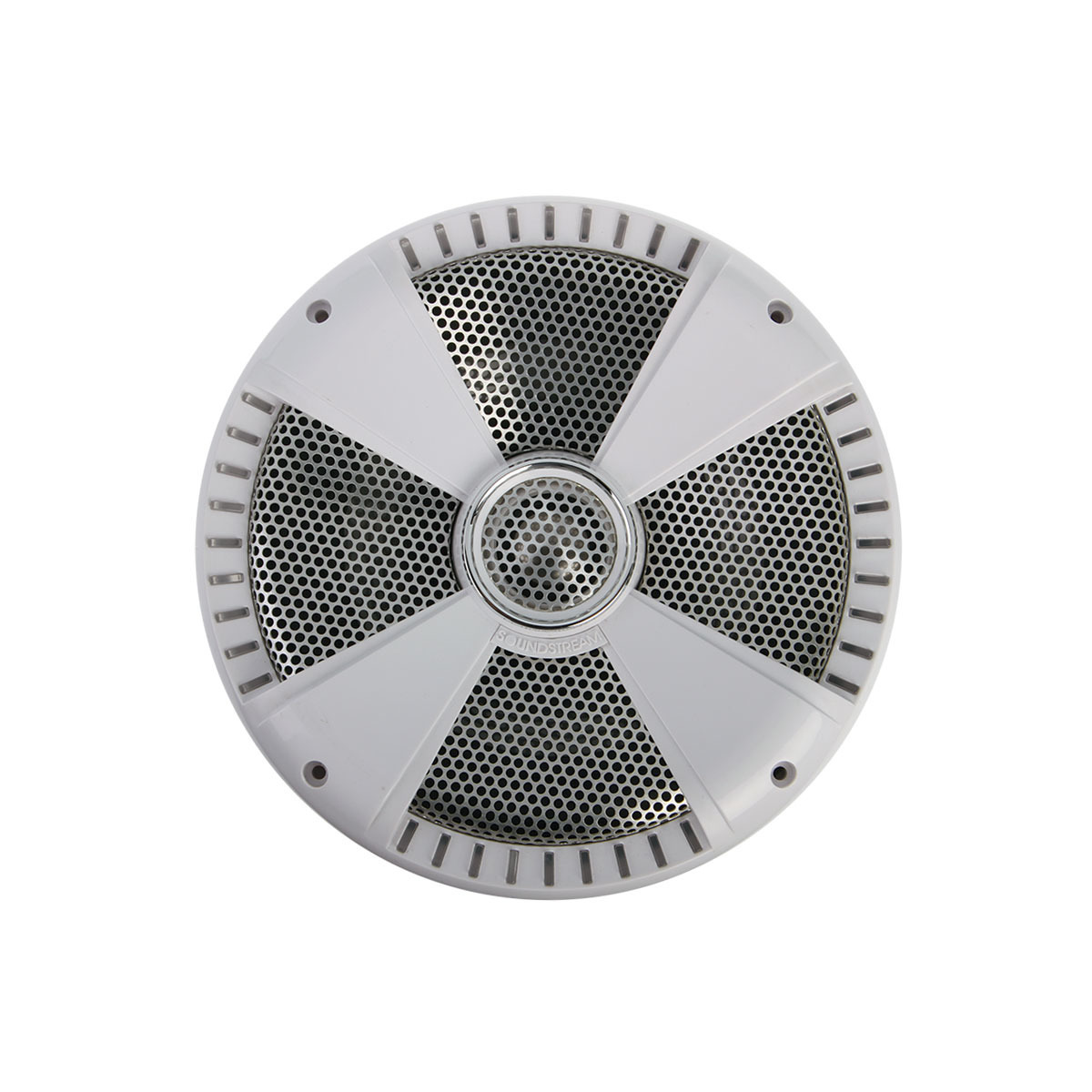 Everyone will hear you coming, thanks to ultra-lightweight blended polypropylene-mica cones and ear-piercing titanium dome tweeter. Each speaker set and subwoofer includes matching gloss white and gloss black grills with anodized aluminum mesh and is pre-wired to install optional RGB LED grill rings.