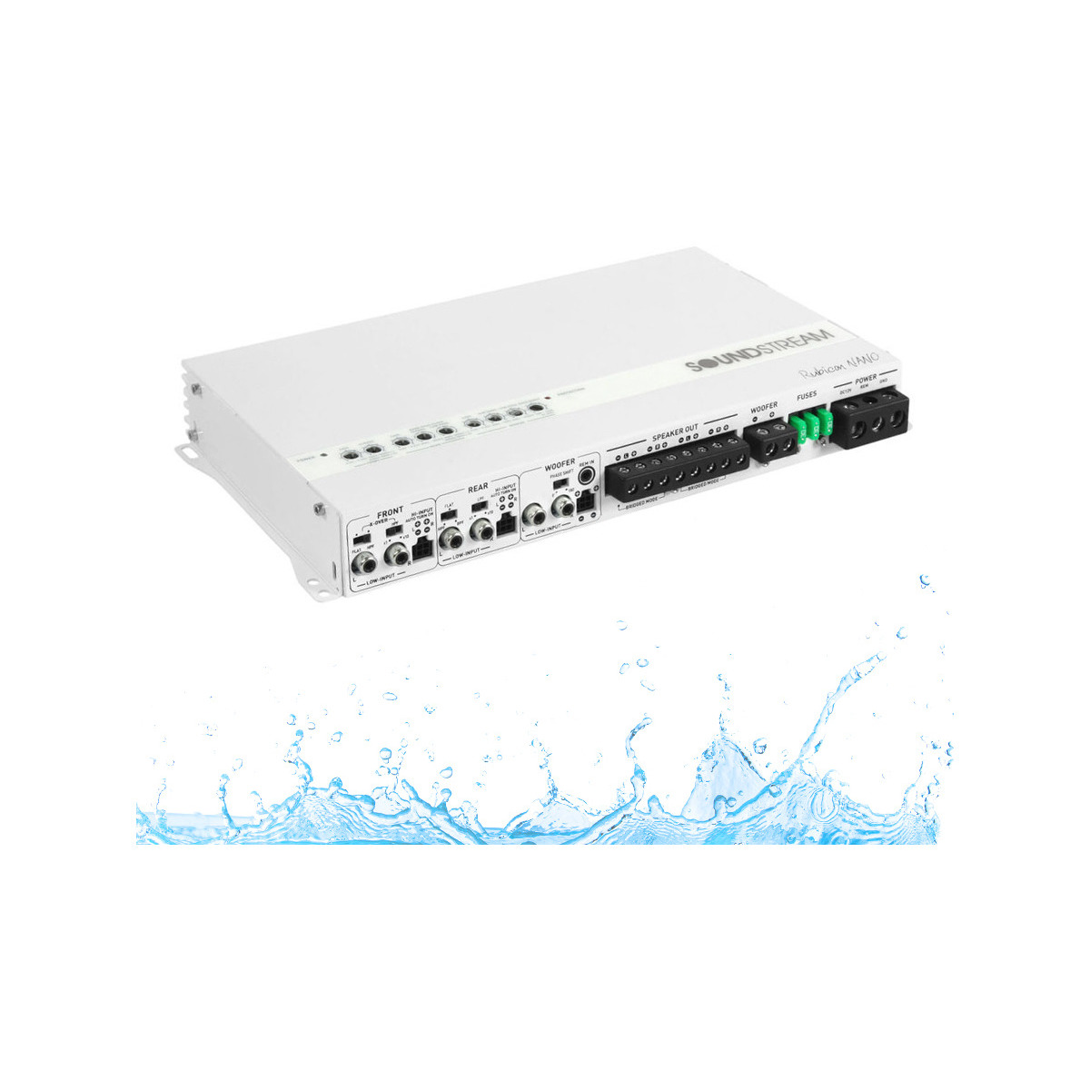 We’ve adopted the most optimum Class D performance, reliability, and smaller footprint platform for the Rubicon Nano series amplifiers and present to you Rubicon Nano. At first glance, you’ll notice this amplifier’s color; that’s the coat and finish to help this marinized model work for Marine or Powersports applications. Rubicon Nano’s signal inputs, power/ground, and speaker connections are all relocated to the leading edge of the chassis for an easier, more attractive install. All pre-amp & crossover options are appropriately located on the top surface, making adjustments after installation conceivable. You might not notice embellishments to the circuit board, including increased power supply & output stage components & Monoblock bridging capability.