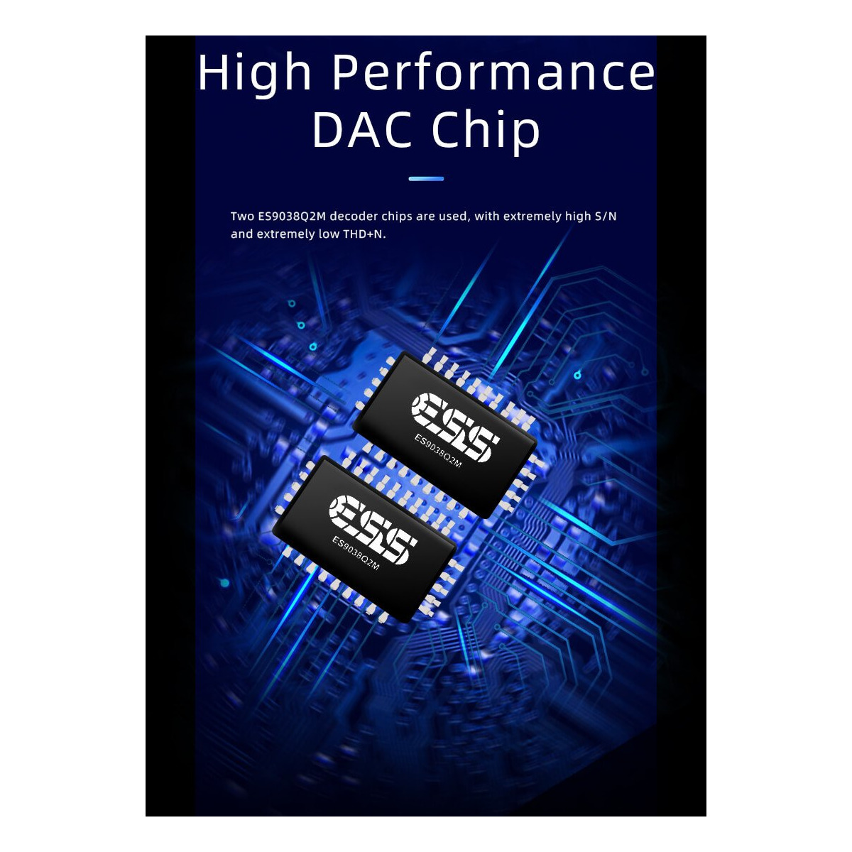 - 2* ES9038Q2M decoding chip, for clear and high-resolution analog signals.