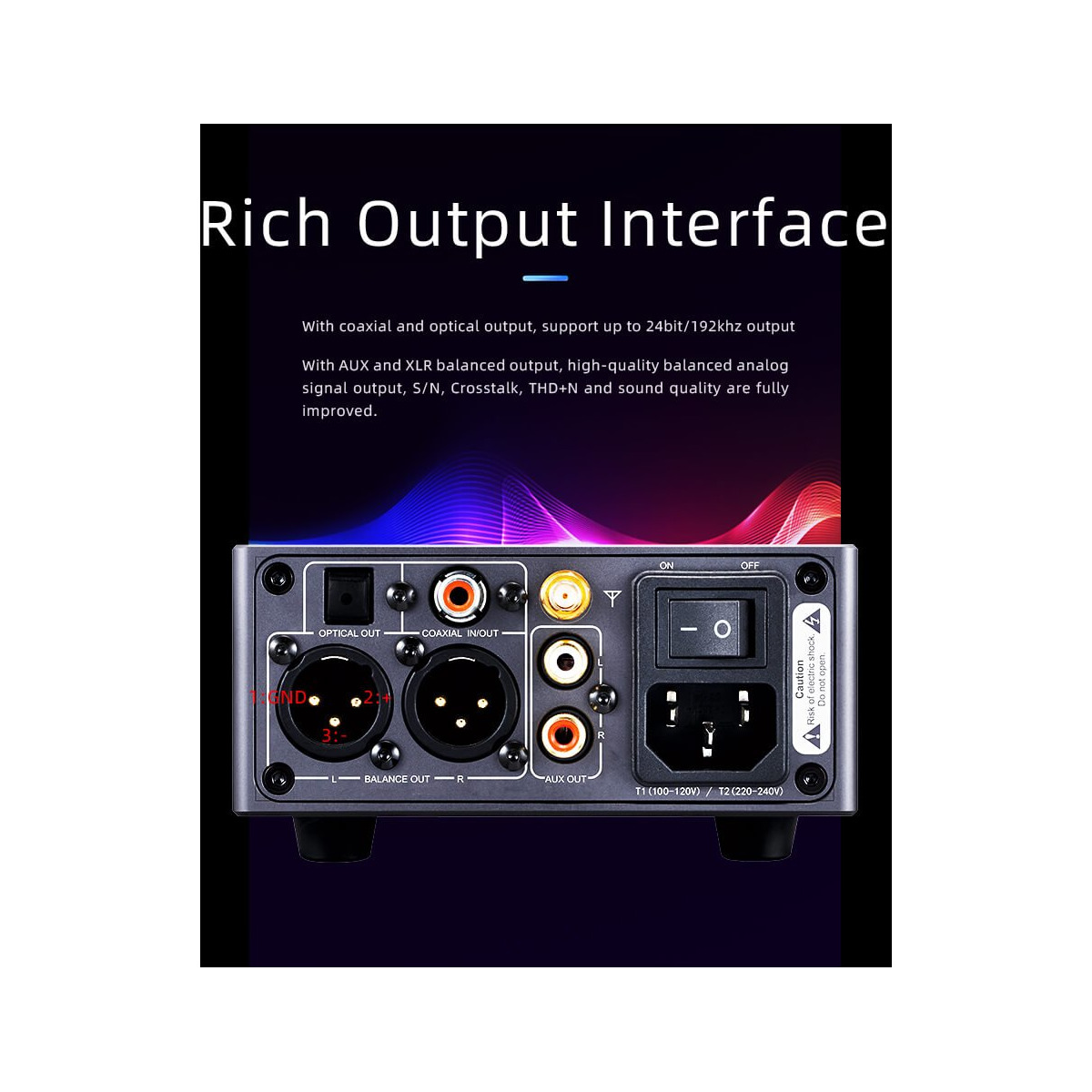 - Up-frequency function, up to 24Bit/192kHz, which makes the sound more delicate.