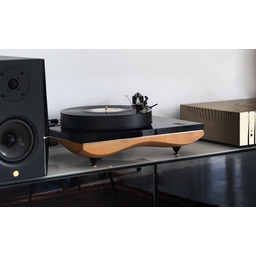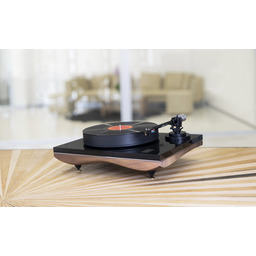 The 45mm thick high-precision platter made of high-density POM is belt- driven and powered by a proprietary control system developed on a Quadral-Core micro-controller enhanced by an audio converter. The power control rebuilds the AC wave to perfectly drive the 12V synchronous motor, removing vibrations while improving its torque, to deliver the greatest dynamic and the finest detail.