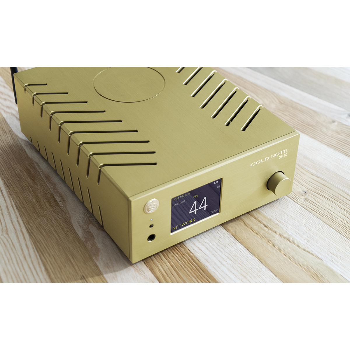The DS-10 also features a professional 6.3mm headphones output with two sensitivity levels (High/Low), a proprietary technology we developed to help get the best out of your headphones. With the additional analogue input (available on the PLUS model only) the DS-10 can be matched to the Gold Note PH-10 phono stage and the PA-10 power amplifier.