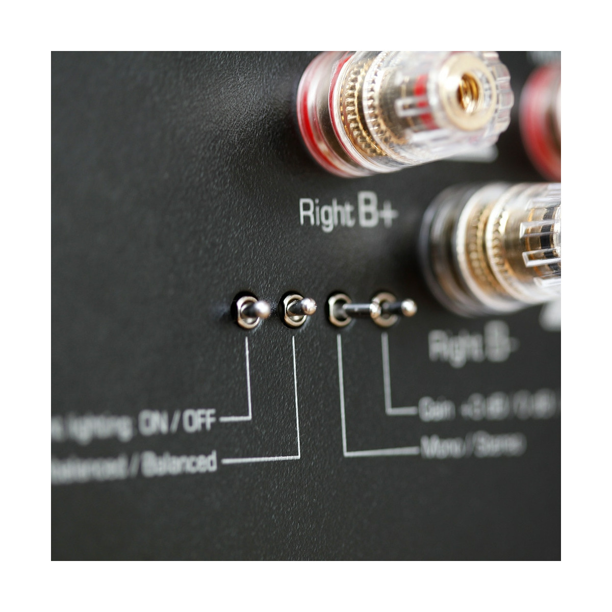 • Class-A output stage for low distortion sound and great sonority. • Undisturbed operation at the highest level through individually decoupled sections.