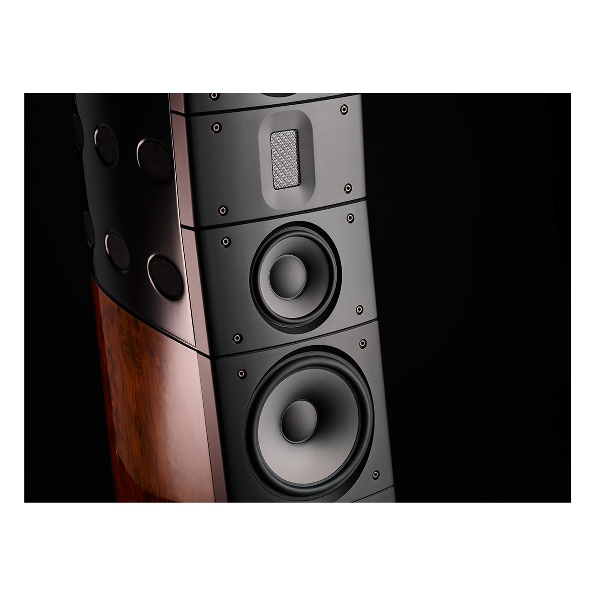 - Drive units: 1 sealed ribbon tweeter 2 100 mm diamond mid-range drivers 4 160 mm diamond bass drivers