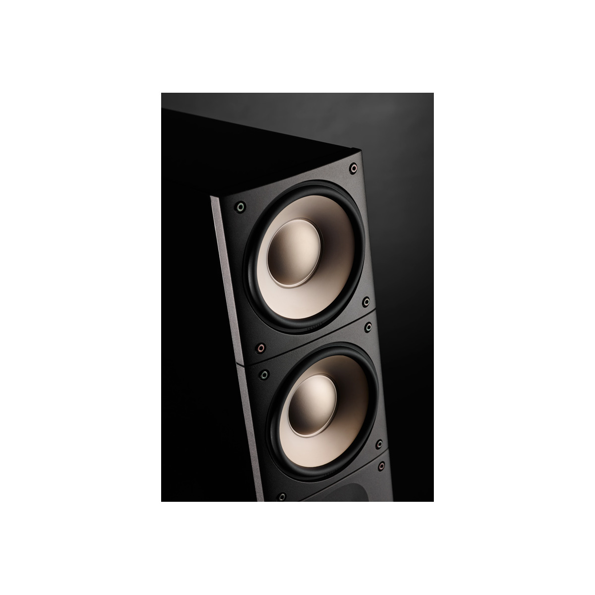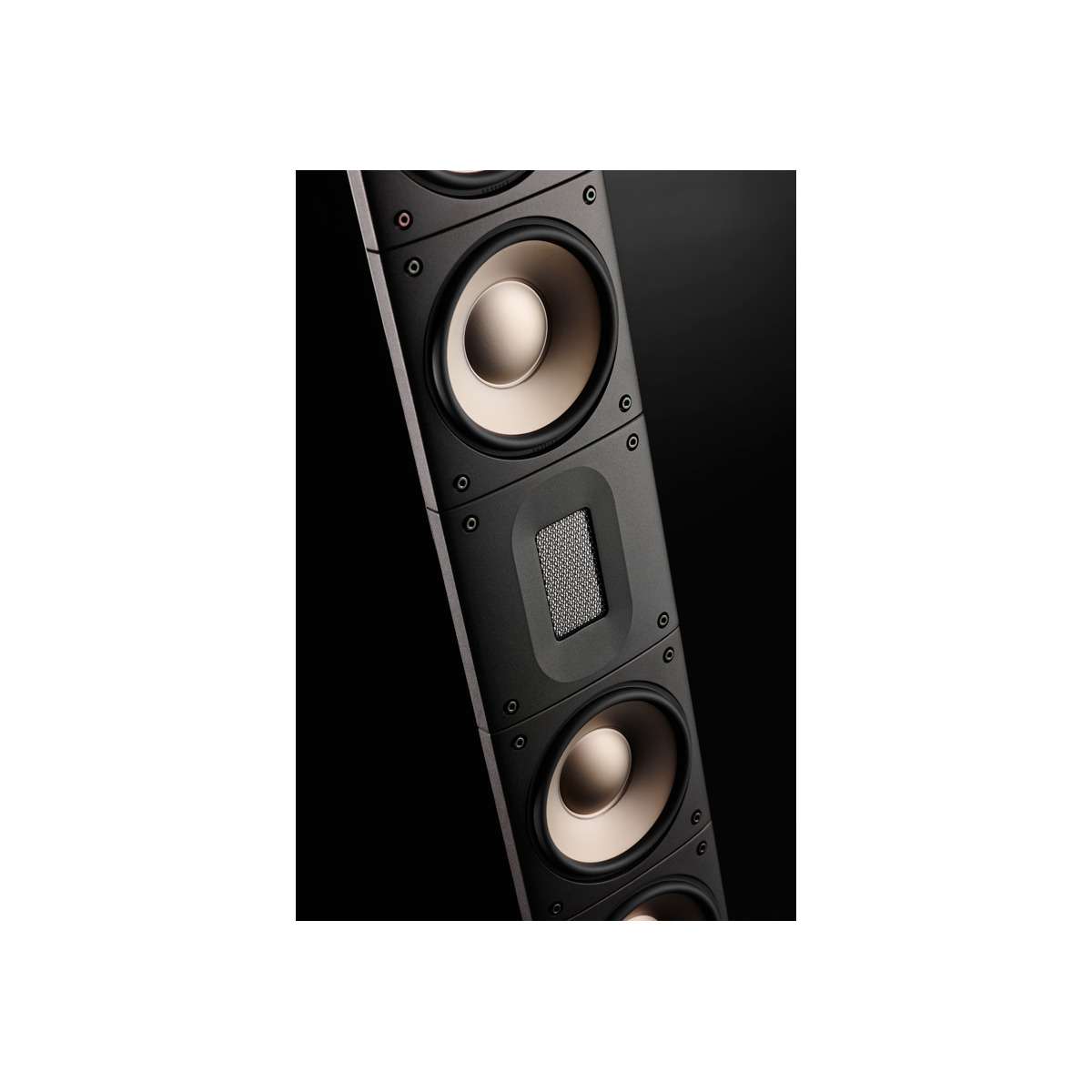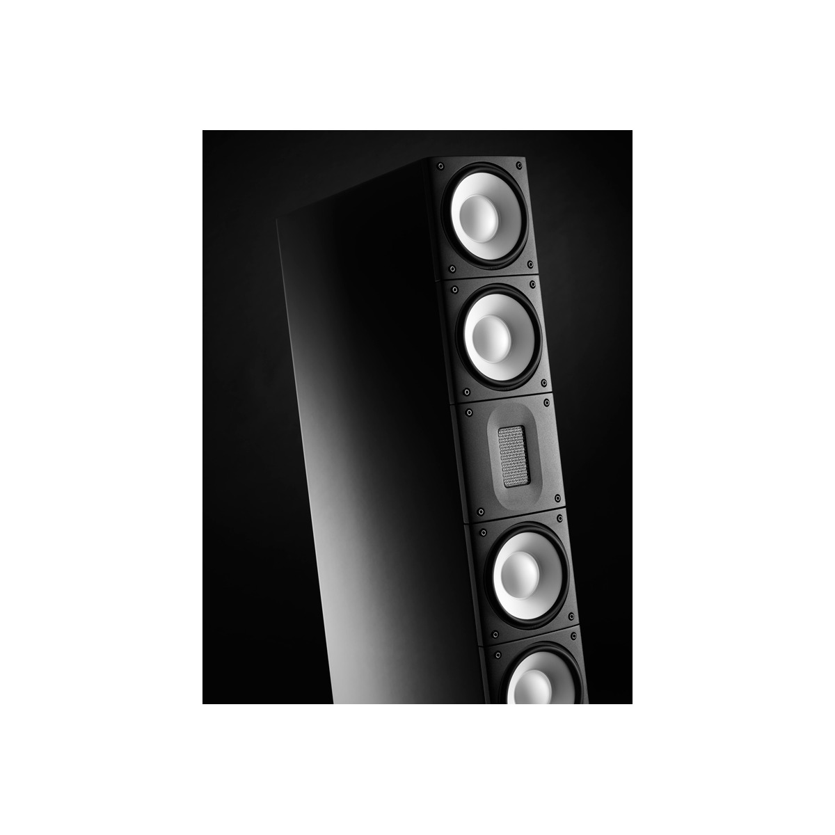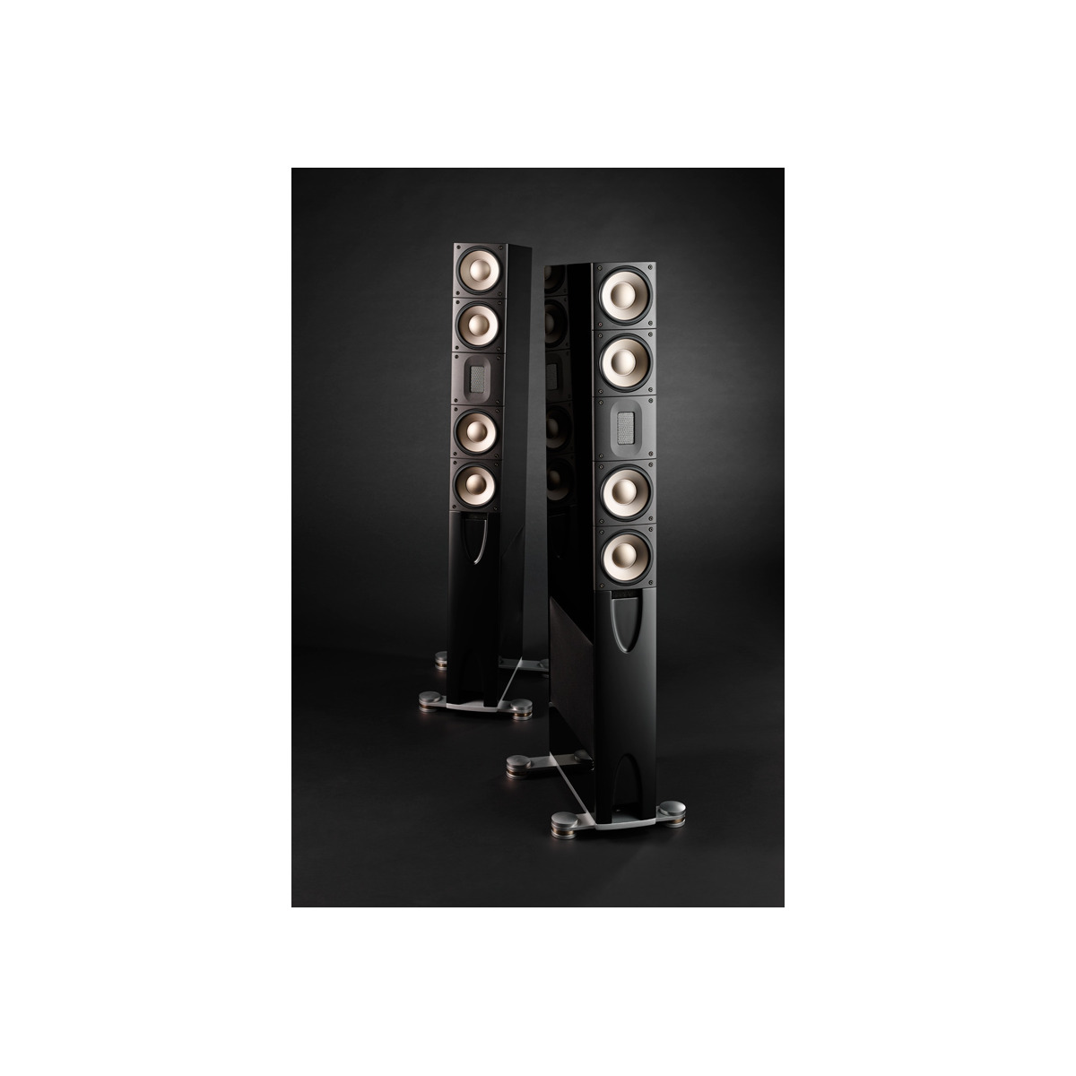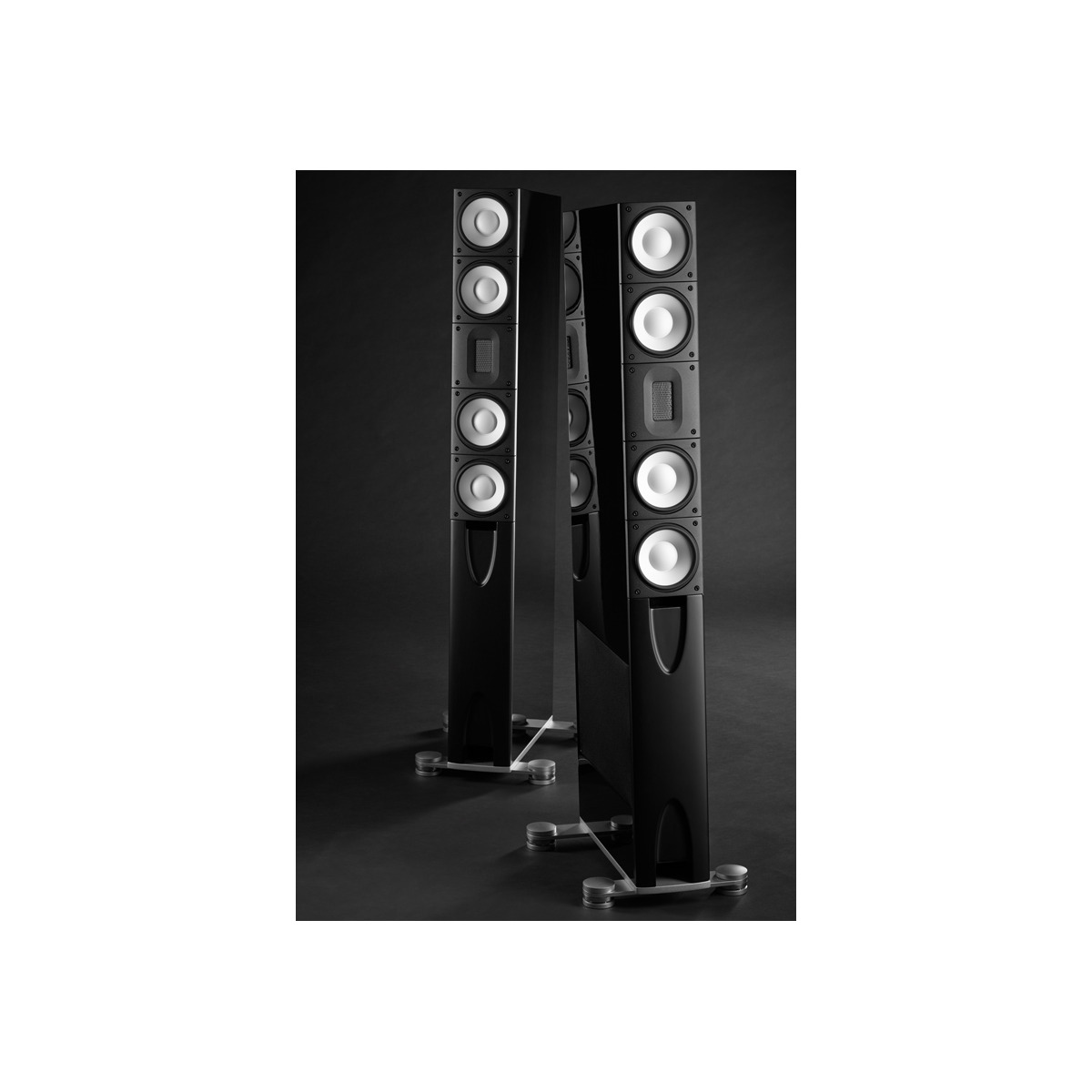 - Drive units: 1 sealed ribbon tweeter 2 100 mm Ceramic driver 2 100 mm mid-bass driver 1 8″ aluconed dynamic bass driver