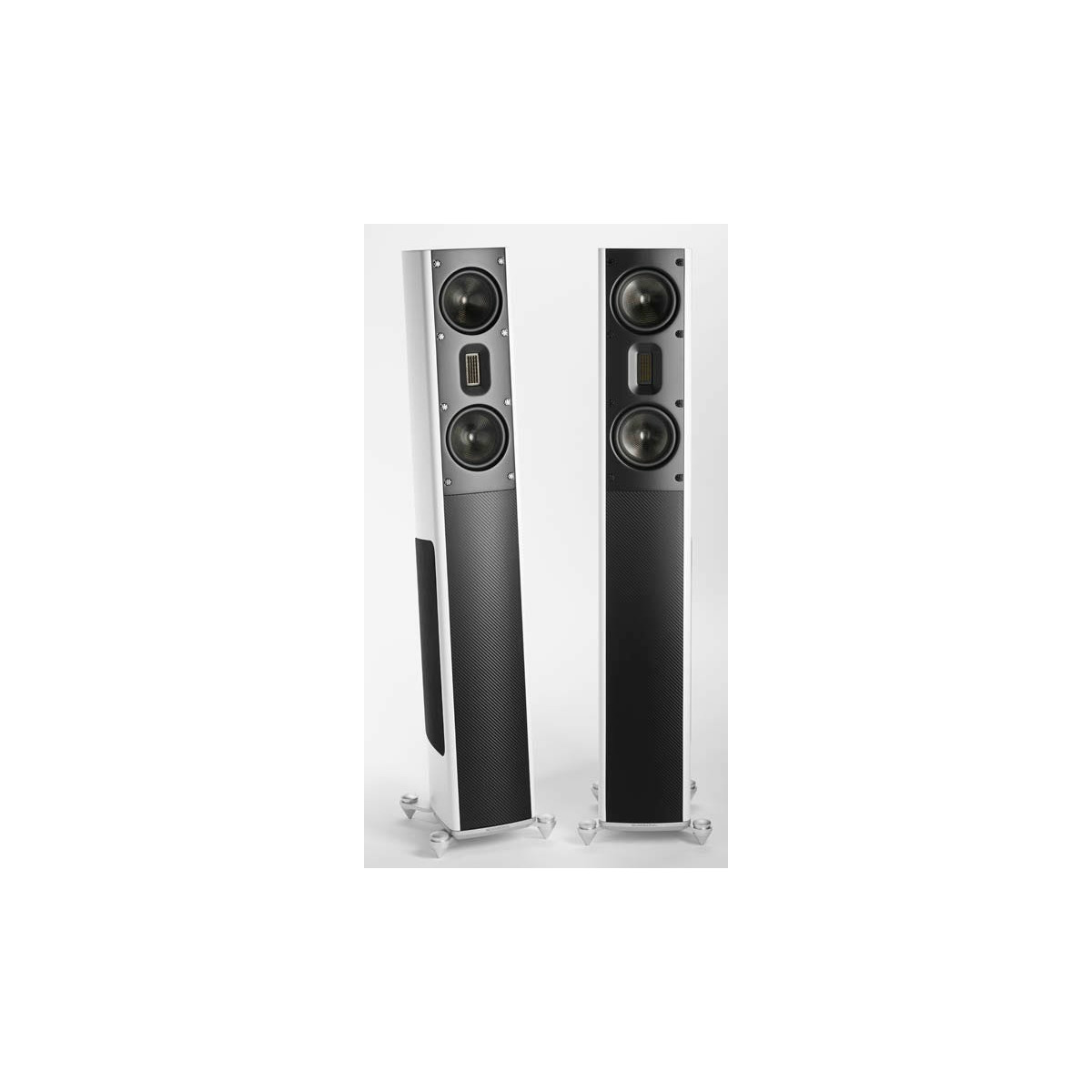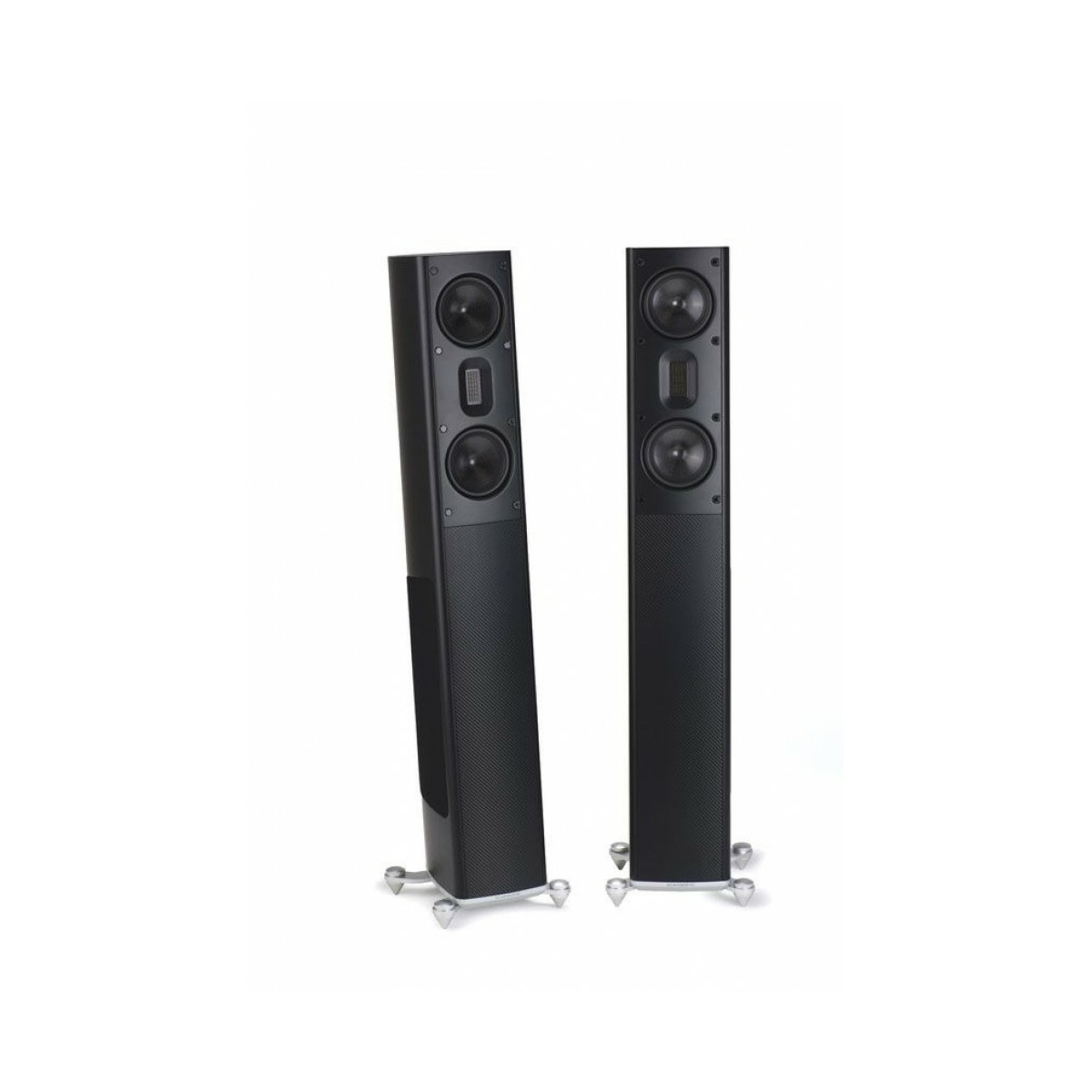 The MB3.5 B is a slim floorstander with two 5,25” carbon-coned drivers, a sealed ribbon tweeter and two 6.5” woofers. The MB3.5 B works as a 3-way speaker, where the two midrange-woofers are supported by two 6.5” aluminum coned woofers. The two carbon midrange-woofers are run in series for increased power handling.