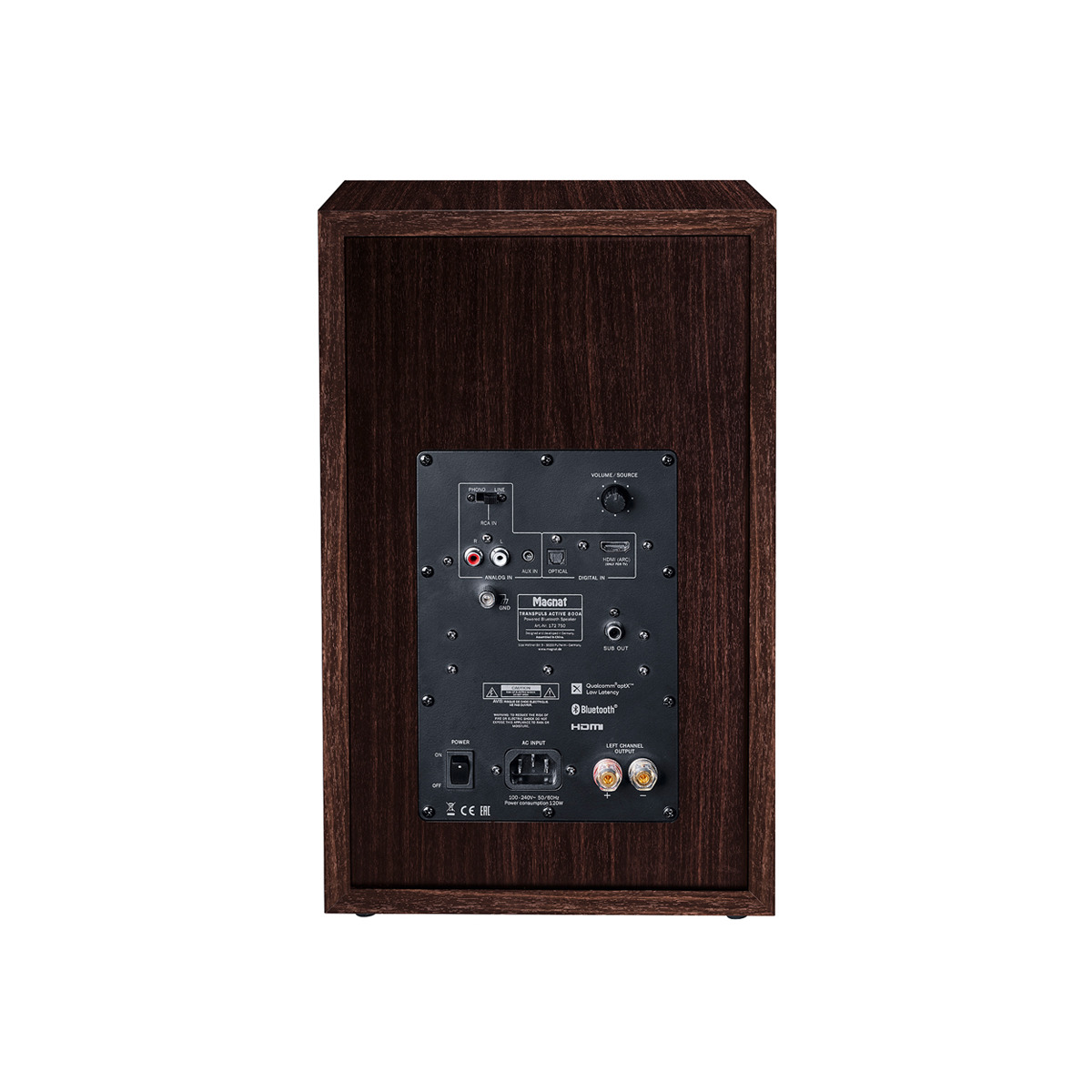 In terms of acoustics, the Magnat Transpuls 800A has all of the rebellious genes of its big siblings. Thanks to the powerful integrated amplifier electronics with its 2 x 120 watt output and the wide range of connection options, the stereo speaker set becomes a fully-fledged hi-fi system that masters all facets of modern music sources.