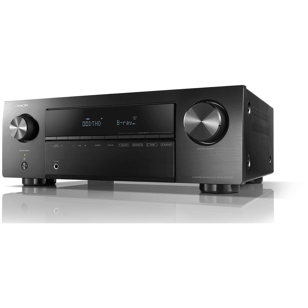 Part of the Denon X-Series line-up, the AVR-X250BT AV receiver powers quality home theatre at 130W per channel. Enjoy your favourite movies and shows with Full 4K Ultra HD, Dolby TrueHD and DTS-HD on all five HDMI inputs, and HDCP 2.2 support on three inputs.