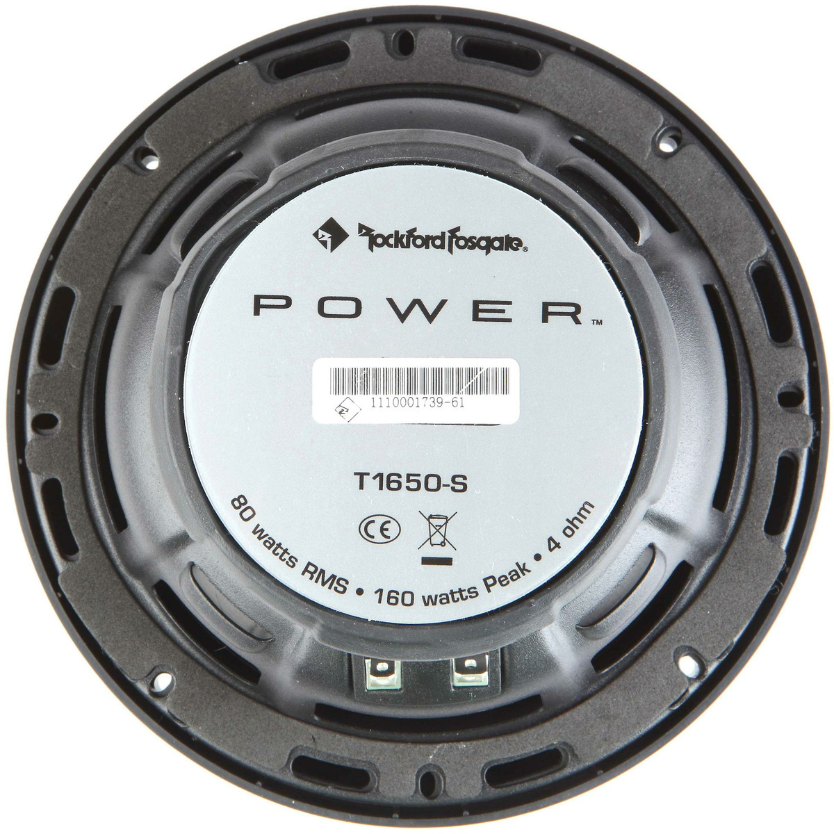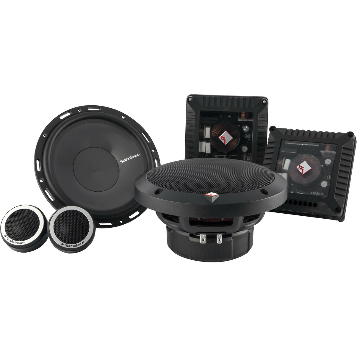 Rockford Fosgate designed the Power T1650-S component speaker system for people who won't put up with inferior sound in their cars. Each 6-1/2" woofer features a responsive carbon fiber/polypropylene cone and Santoprene rubber surround that'll stand up to hours of high-volume jams. The separate 1" dome tweeter provides clear, extended highs that can hold their own when the bass gets heavy. The included external crossover network sports selectable tweeter levels and on/off axis switching, allowing you to sculpt the high frequencies to your car's interior.